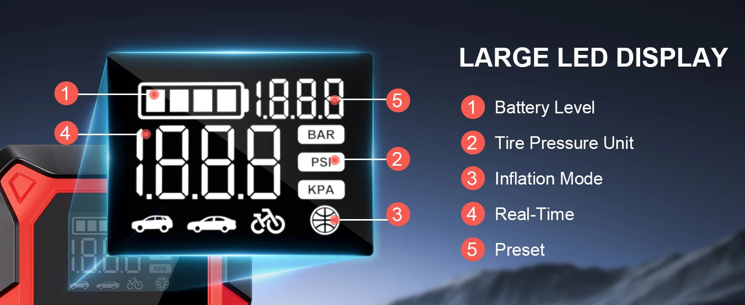 Whether you’re changing a tire in the dark or signaling for help, the built-in 3-mode LED light—featuring Illumination, SOS, and Strobe—ensures you’re never left in the dark. At 100 lumens, it’s bright enough to light your path or warn others.