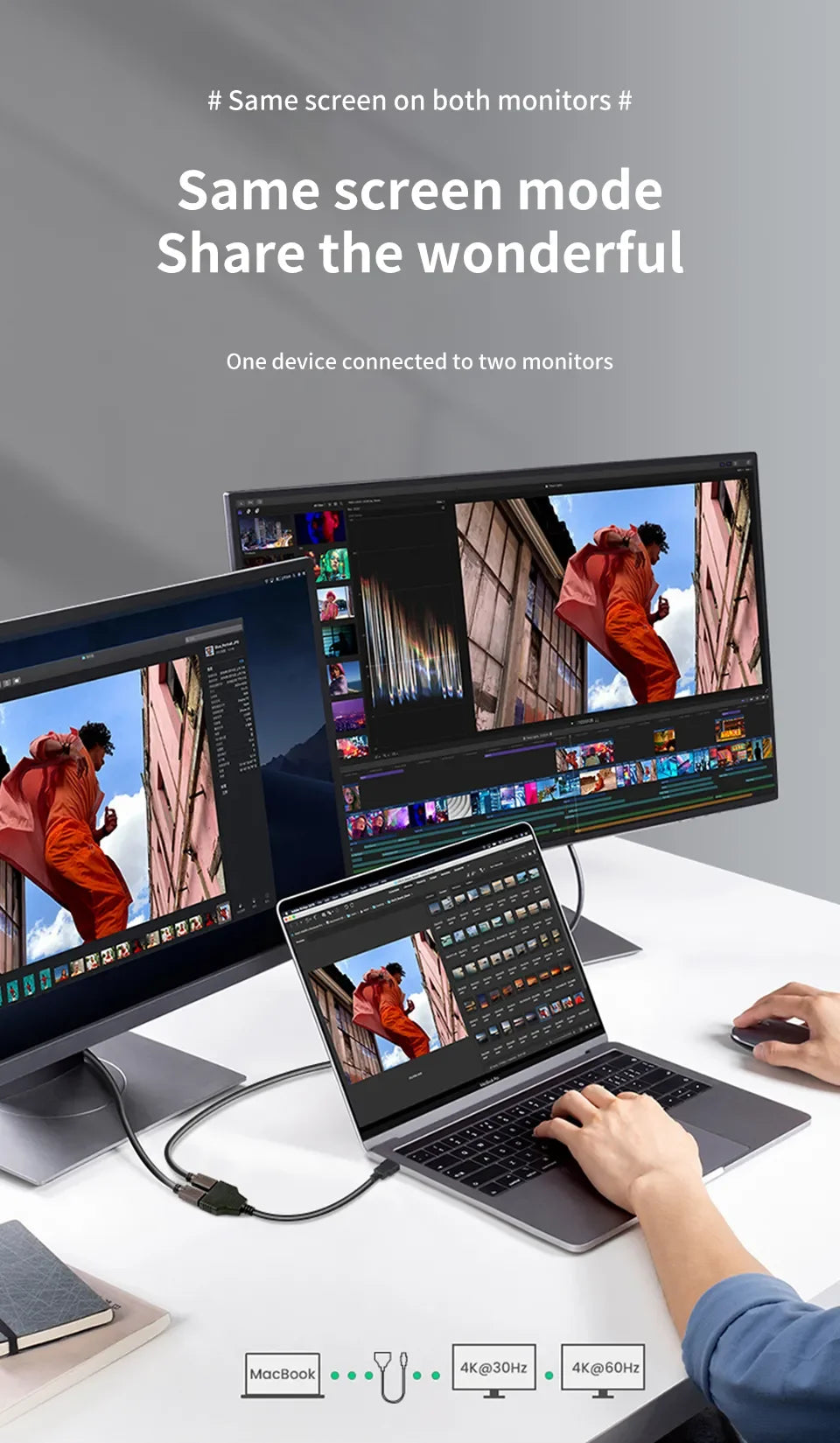 Full 1080P Resolution: Enjoy crystal-clear video on two screens simultaneously