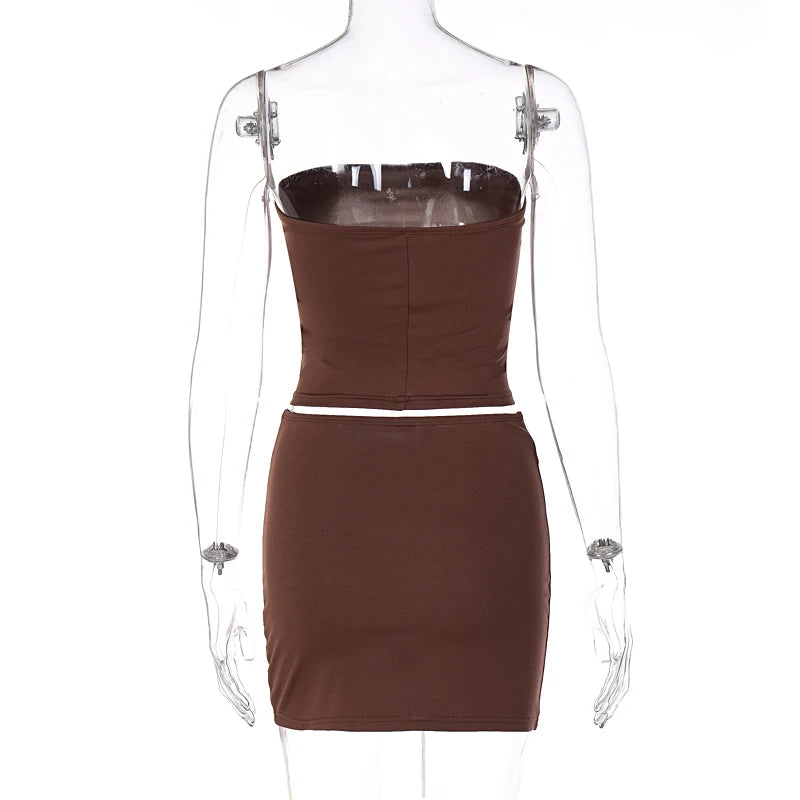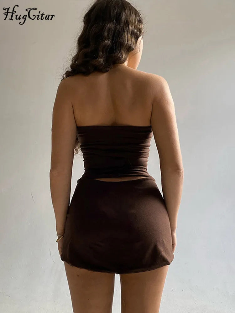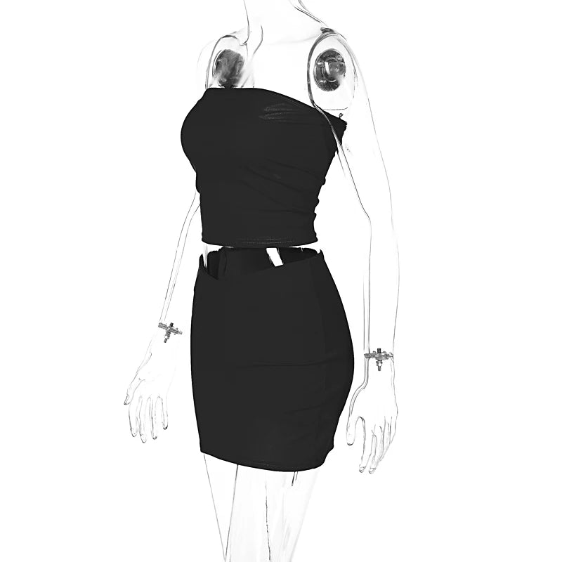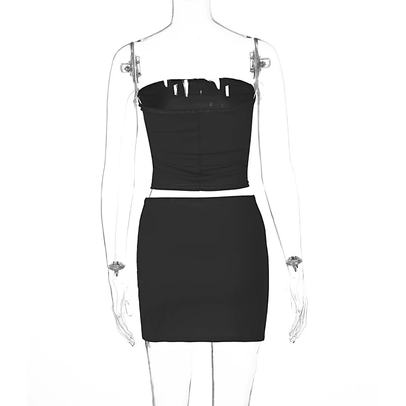 Chic 2-Piece Matching Set: This stylish set includes a strapless tube top and a mini skirt, both designed to create the perfect summery look. The solid color gives it a modern and minimalist vibe, making it easy to mix and match with your favorite accessories.
