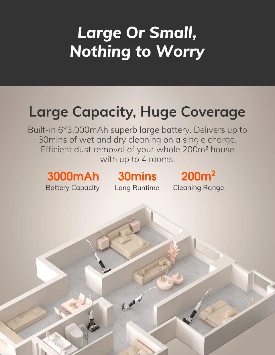With 5500Pa suction power, the ILIFE W90 ensures that even the smallest particles are picked up, leaving your floors spotless. From dust to debris, this powerful vacuum will suck up everything in its path, making it ideal for homes with high foot traffic, pets, or children.