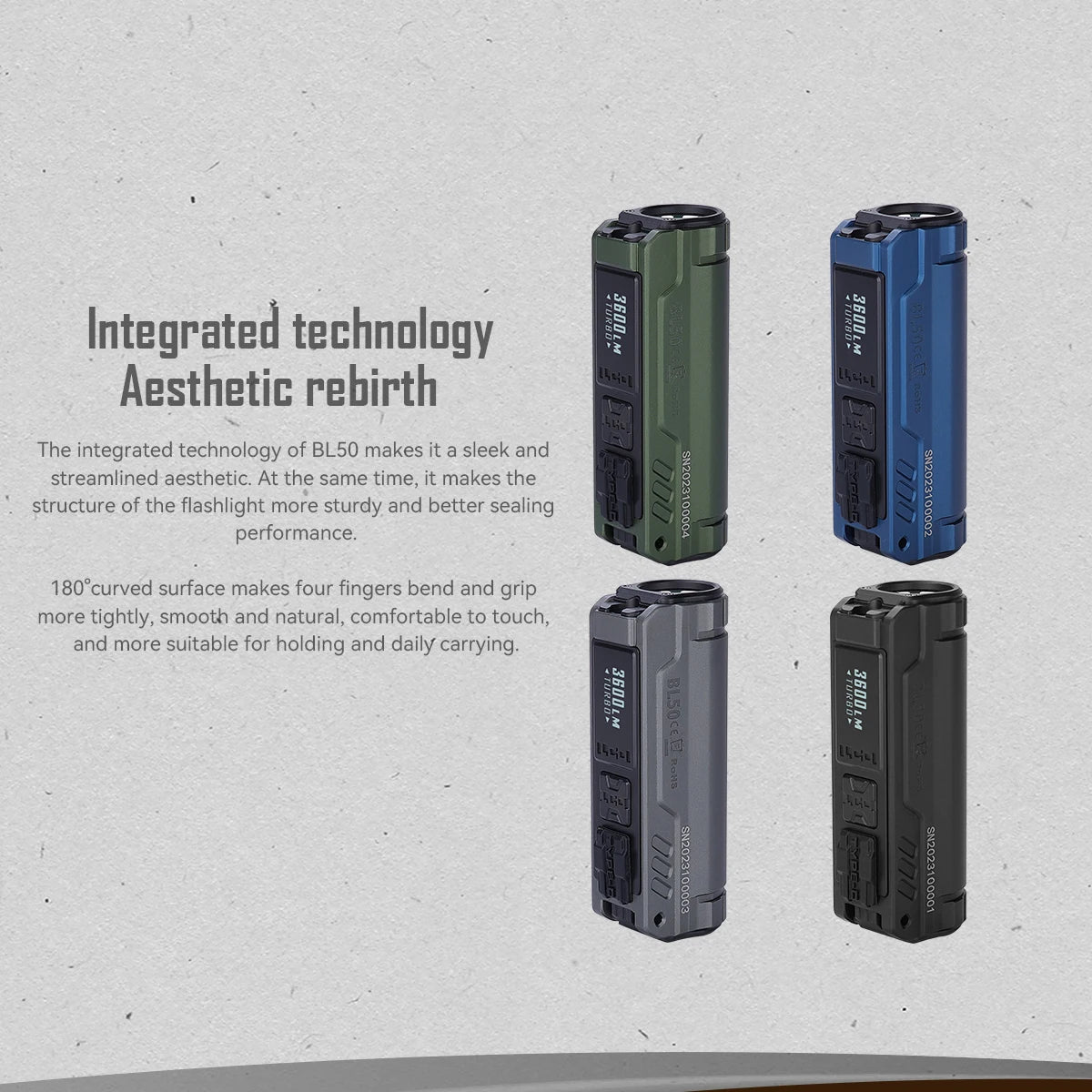 The BL50 is crafted from aerospace-grade aluminum alloy with a Type-III hard-anodized finish, providing superior durability, shock resistance, and waterproofing (IP68). With six adjustable brightness levels, strobe mode for self-defense, and UV lighting for versatile applications, this flashlight is ideal for outdoor enthusiasts, security professionals, and emergency preparedness. Lightweight and portable, it comes in multiple colors—navy blue, black, dark grey, and army green—perfect for personal use or gifting.