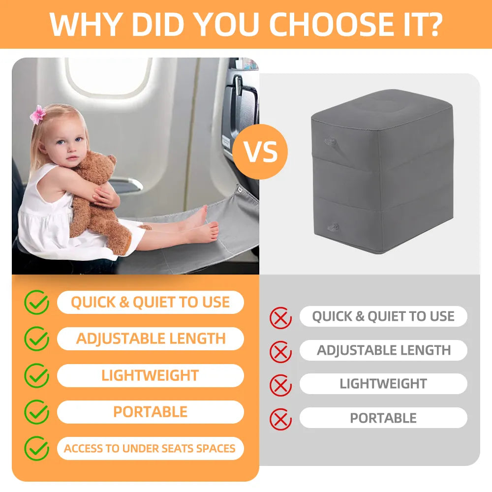 Transform your child's travel experience with the Kids Travel Airplane Bed. It's more than just a travel accessory; it's a comfort enhancer that makes flying with children a breeze. No more cramped seats or restless, fidgety kids. Instead, enjoy the peace of mind knowing your child is comfortable, relaxed, and happy, making every journey a pleasant adventure. With this portable travel footrest hammock, you're not just improving your child's comfort; you're upgrading your entire family's travel experience.