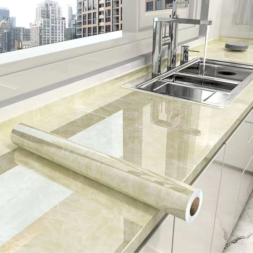 Kitchen Oil-Proof Self-Adhesive Film - Waterproof and Moisture-Proof Wallpaper for Stove, Countertop, Cabinet Renovation, Marble Tile Sticker