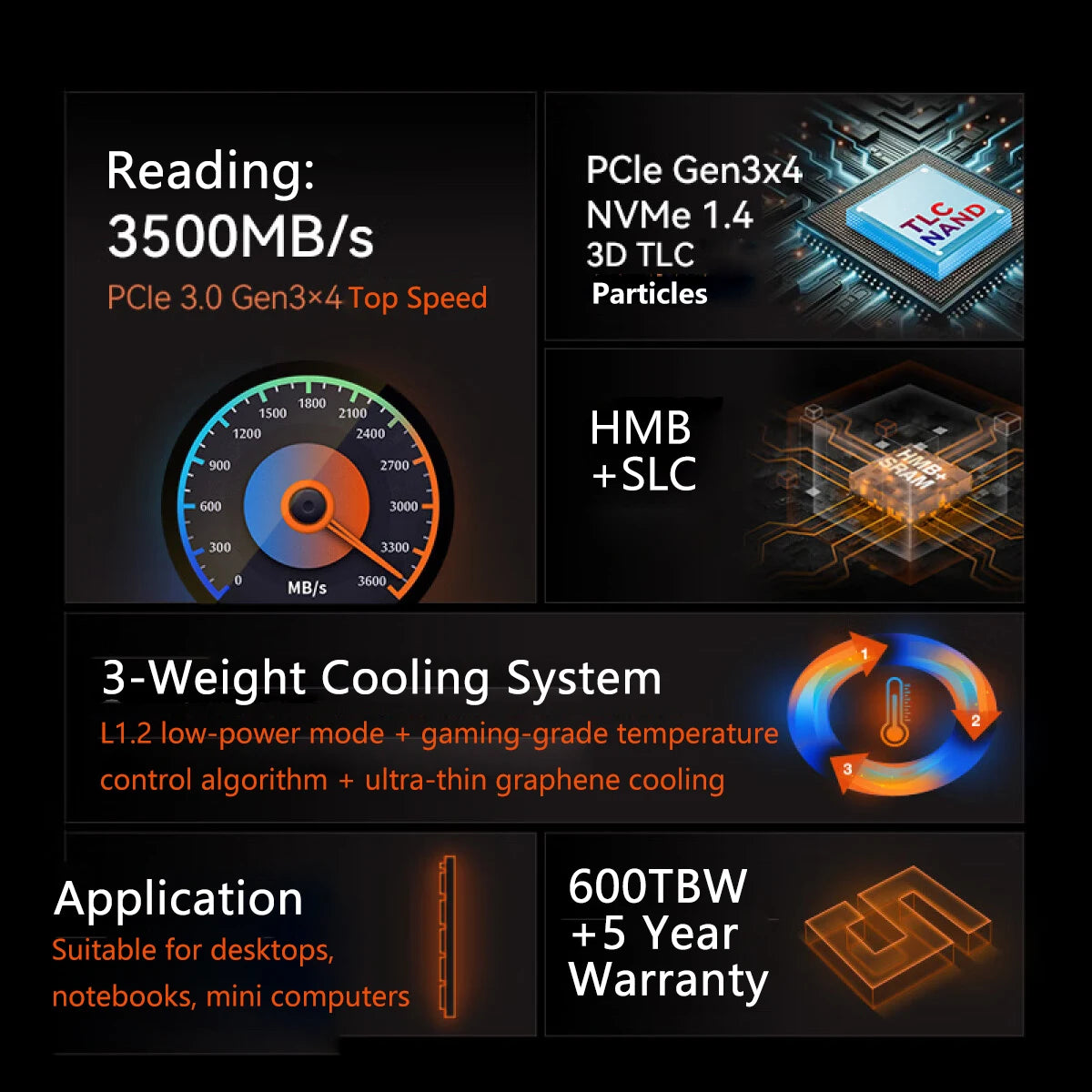 🔹 1TB – Read: 3000-3300MB/s | Write: 2400-2700MB/s