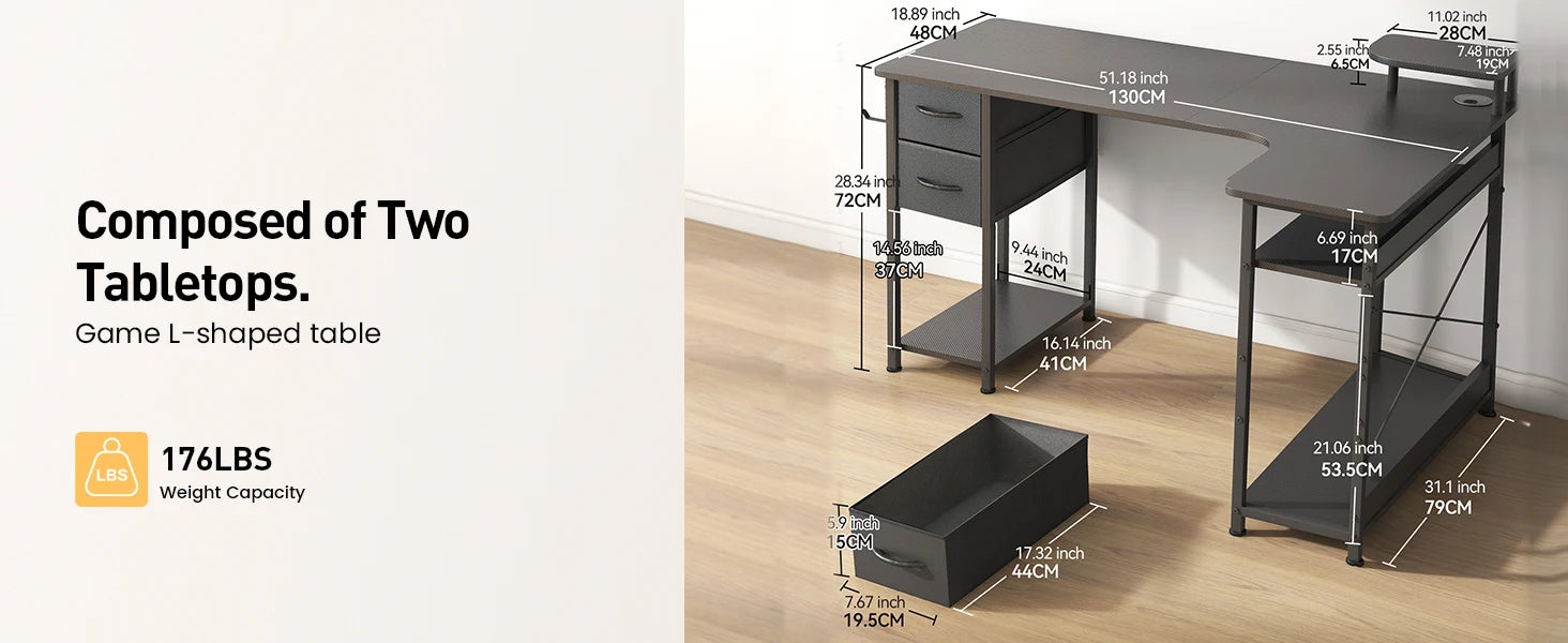 Perfect For: Gamers, home office users, students, and anyone seeking a functional and stylish L-shaped desk.