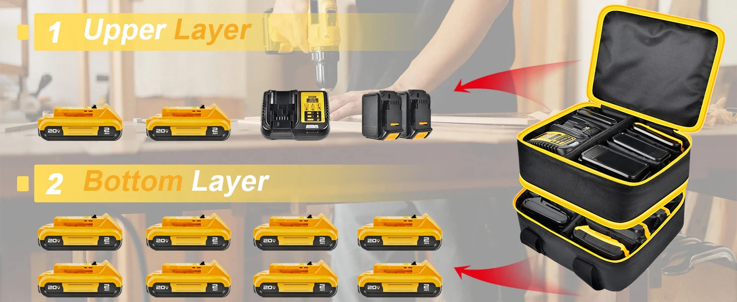 Large Battery Storage Bag for DEWALT & Milwaukee 12V-20V – Tool Battery & Charger Carrying Case (Box Only)
