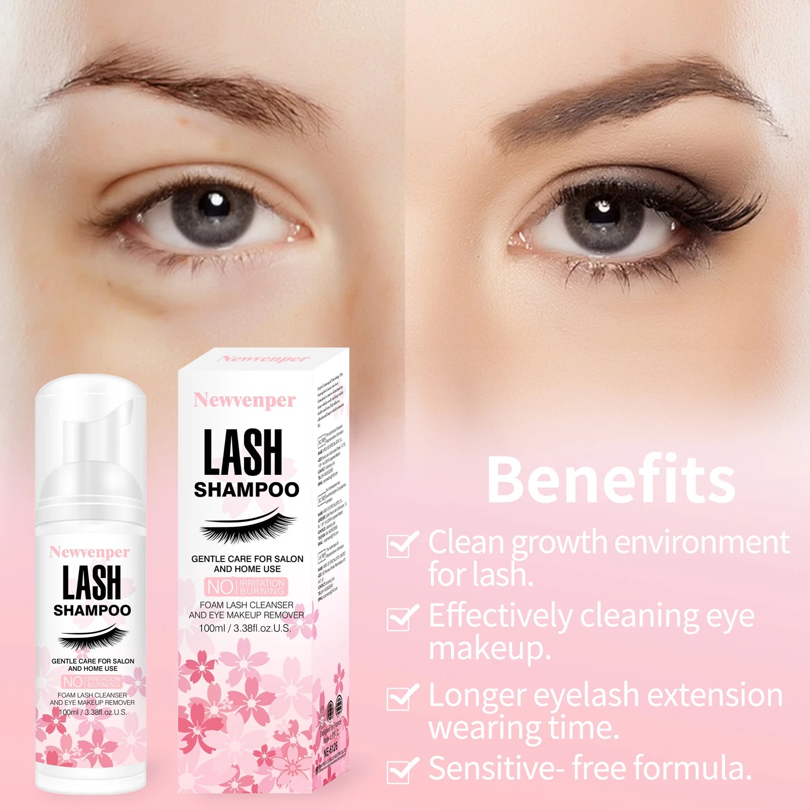 100ML Eyelash Lash Shampoo with Brush & Mascara Wand – Foaming Eyelid Cleanser for Extensions & Makeup Removal