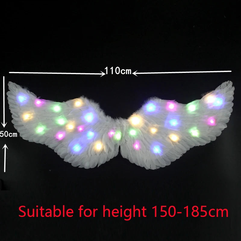 Please note that the other accessories shown in the picture are not included, but the LED lights are ready to dazzle. Get ready to spread your wings and light up the night with our LED Luminous Angel Feather Wings Tutu. Order now and make your next event truly magical!