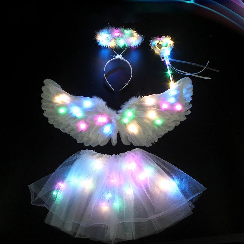 Elevate Your Party Look with LED Luminous Angel Feather Wings Tutu!