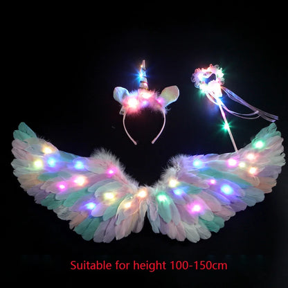 LED Luminous Angel Feather Wings Tutu - Glow in The Dark Princess Fairy Wings for Wedding, Birthday, and Cosplay Parties - Perfect for Adults and Kids