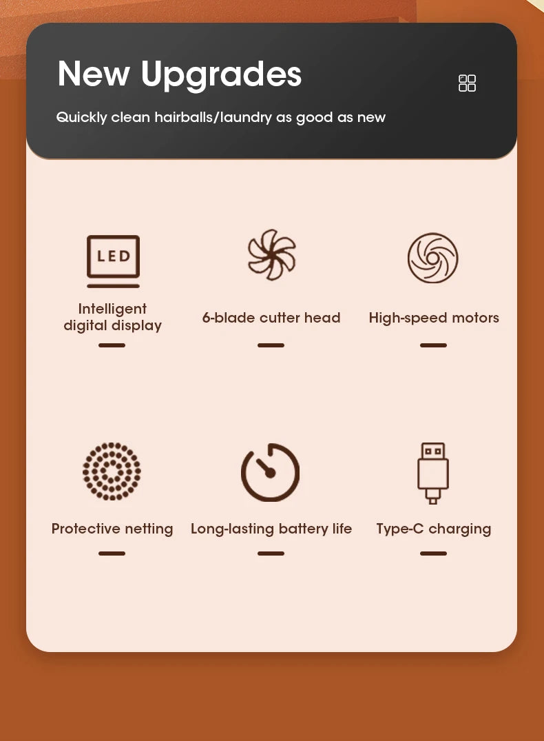 Powered by a high-speed motor spinning at 8000 rpm, the six-leaf precision steel blades cut lint and fuzz 132,000 times per minute—efficiently removing pills without damaging your clothes. The flexible blade design hugs fabric contours, ensuring no missed spots or snags.