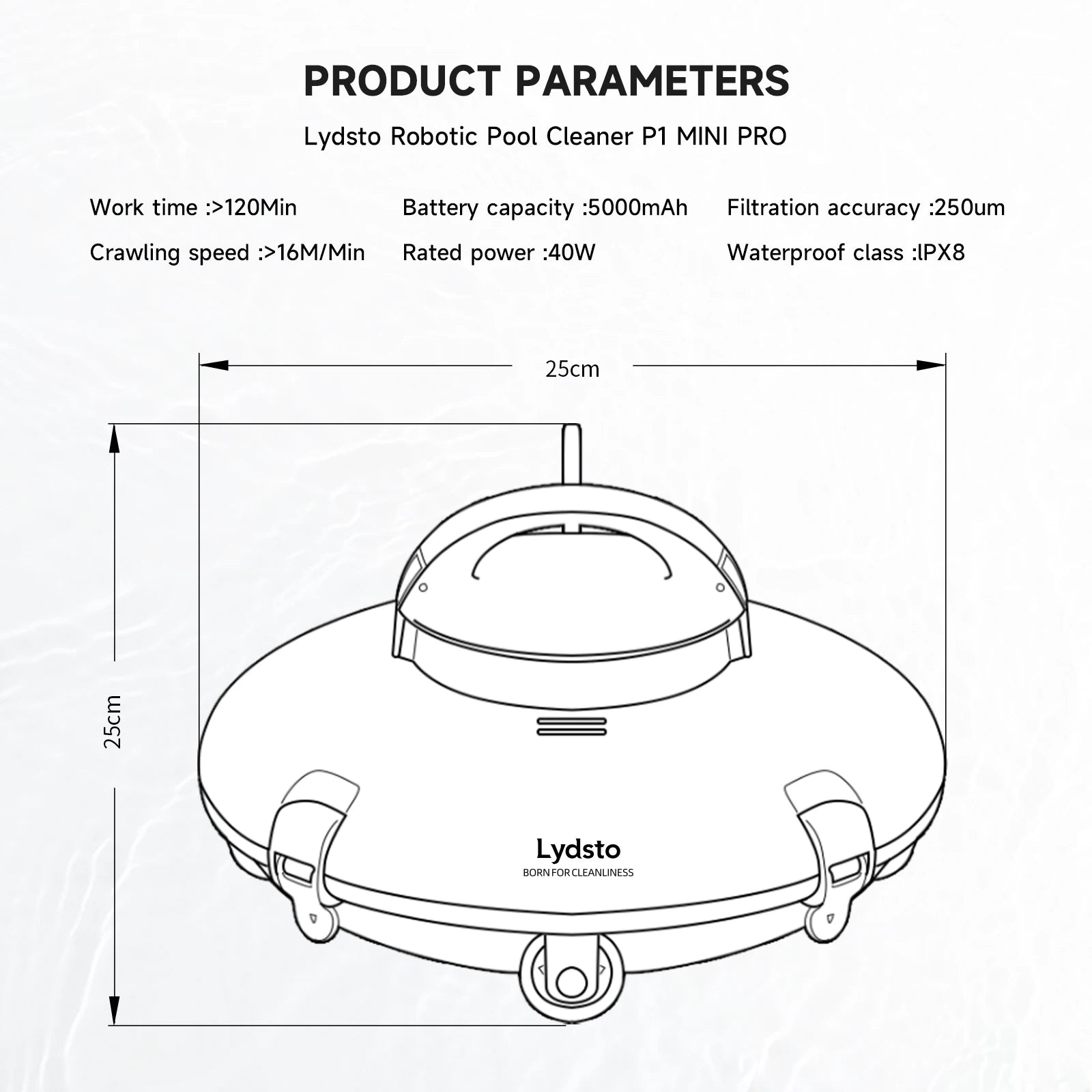 Whether it’s an above-ground pool or an in-ground pool, the Lydsto pool cleaner is built to handle it all. Its compact size (25x25x25cm) and lightweight design (3.3kg) make it perfect for various pool sizes and shapes.