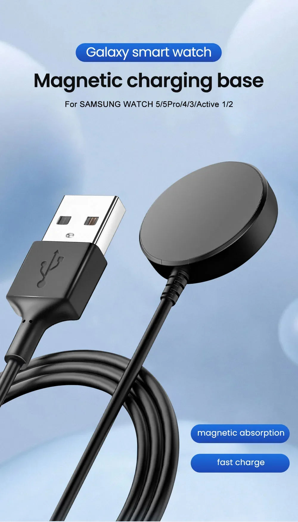 Magnetic wireless charging for Samsung Galaxy Watches.