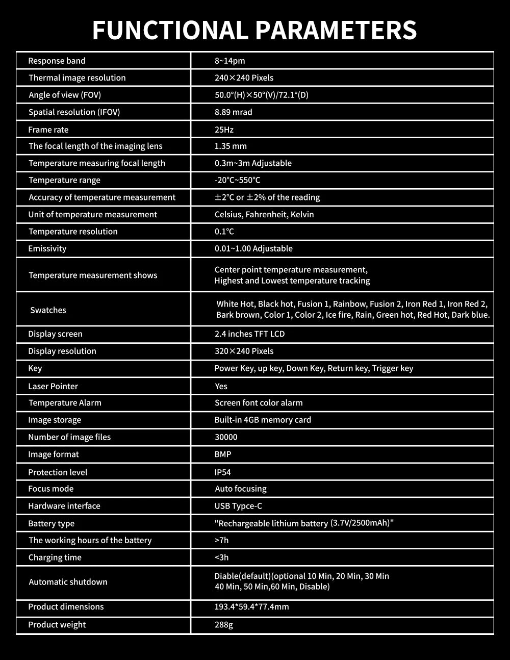 User-Friendly Interface: The 320x240 resolution display offers clear, easy-to-read visuals, while the compact, handheld design makes it simple to carry and use in any situation. It’s the perfect tool for both professionals and DIY enthusiasts who need fast, reliable thermal detection.
