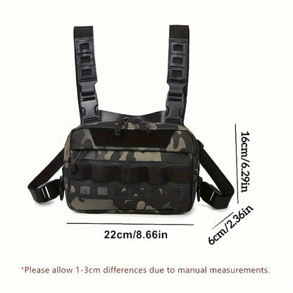 Random Camouflage Print for a Rugged, Outdoor Look: Featuring a unique random camouflage print, this vest bag adds a touch of rugged style to your outdoor gear. The pattern not only looks great but also blends seamlessly with natural surroundings, making it perfect for those who want to stay stylish while embracing the wilderness.