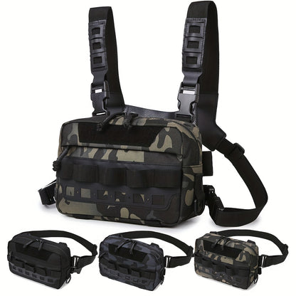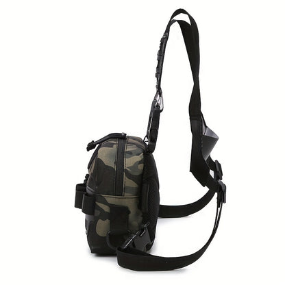 Men's Camouflage Fishing Vest Bag - Water-Resistant Nylon, Zipper Closure, Random Printing - Portable, Lightweight for Mountaineering, Camping, Hiking, Outdoor Adventures