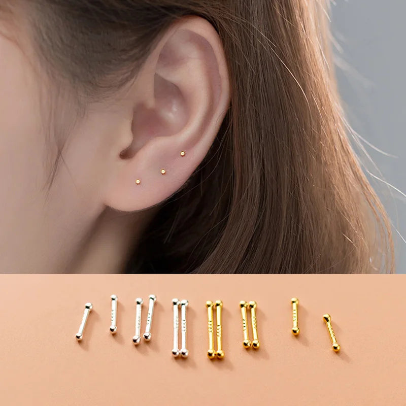 Mini Invisible Earring Set: Ball Nose Studs & Bone Piercing Jewelry - 2pcs Ear Nails for Women's Body Piercing Accessories