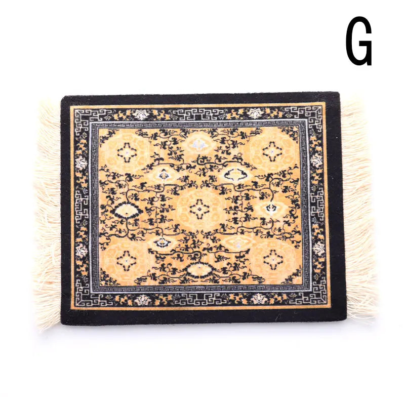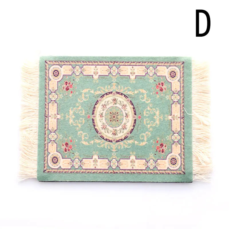 Mini Persian Rug-Style Mouse Pad - Woven Carpet Pattern with Fringe, Perfect for Home Office and Laptop Use