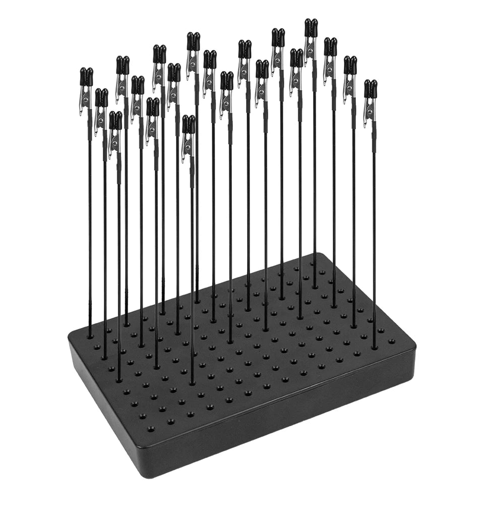 Crafted for serious hobbyists and professional modelers alike, this stand fits clips perfectly with a redesigned 2.1mm face hole and 2mm clip stick diameter for smooth in-and-out action. The innovative fixed structure keeps every clip standing straight and stable, while durable rubber feet prevent slipping on your workspace. Your models stay safe and scratch-free thanks to soft insulated rubber tips on every alligator clip, gripping even tiny or heavy parts gently but firmly.