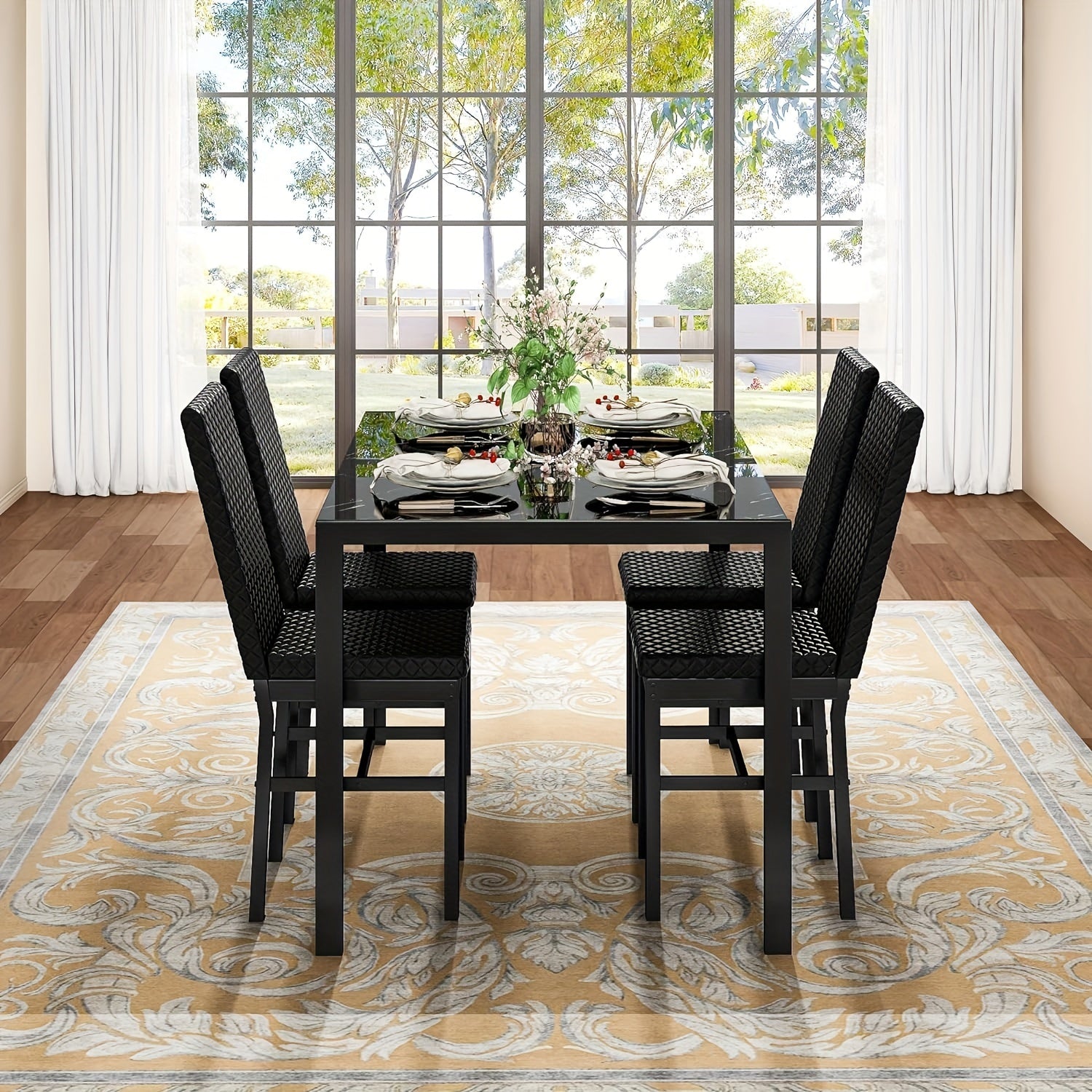 Faux Leather Upholstered Chairs for Comfort and Style: Each chair in this 5-piece dining set is upholstered in high-quality faux leather, offering both comfort and style. The soft, cushioned seats provide a cozy dining experience, while the sleek design complements the modern aesthetic of the tempered glass table, creating a cohesive look.