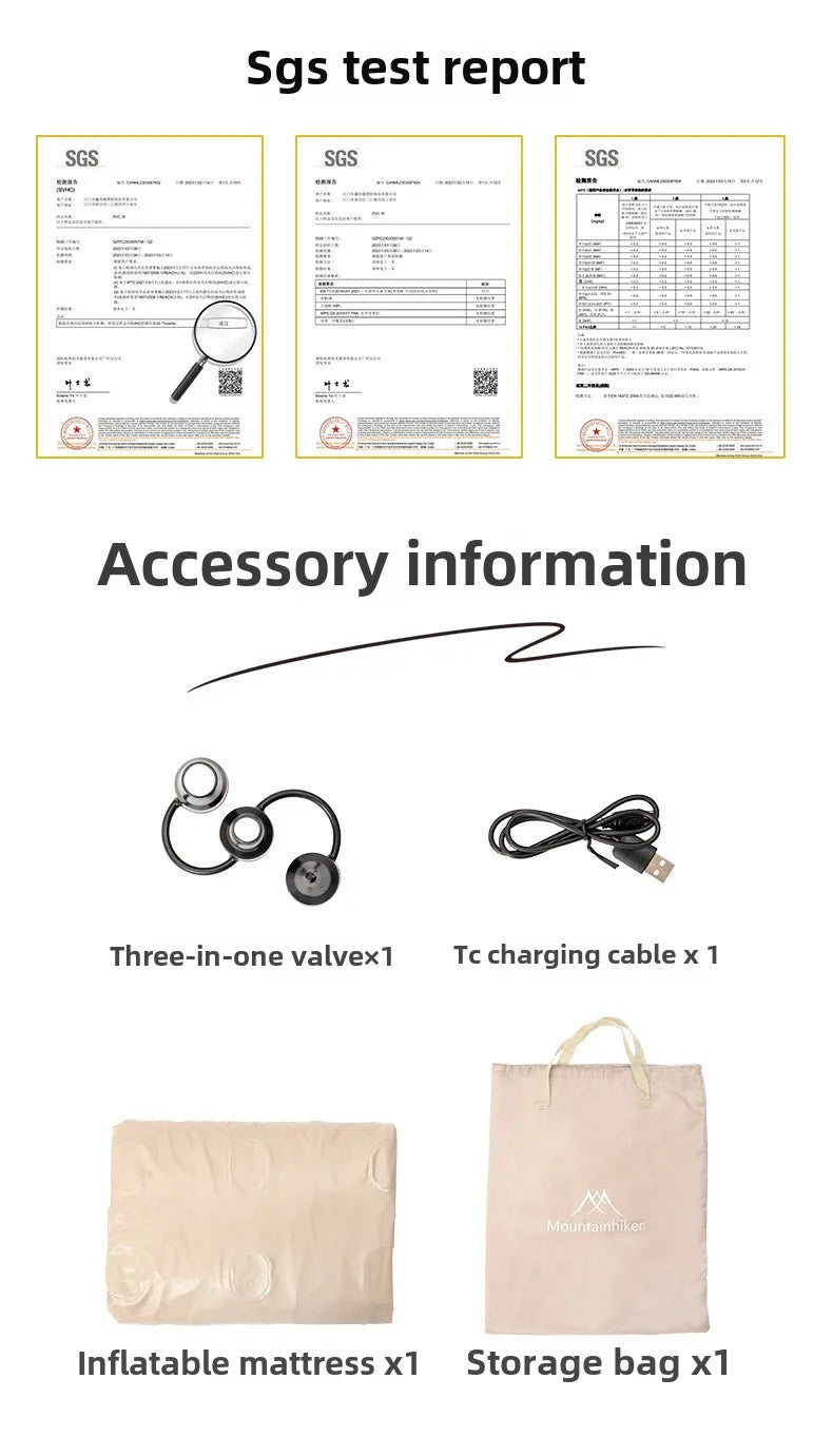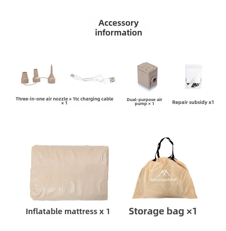 Introducing the MOUNTAINHIKER 2025 Interior Air Mattress, a luxurious addition to your camping gear that promises not only comfort but also convenience and style for 1 to 3 campers. Perfect for self-driving travel, glamping, or any outdoor excursion where comfort is key, this inflatable bed is designed to enhance your sleeping experience under the stars.