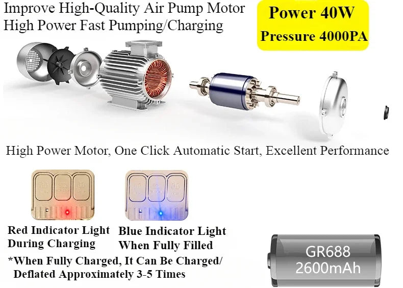 - Inflation Pump: Built-in, with a battery capacity of 2600 mAh