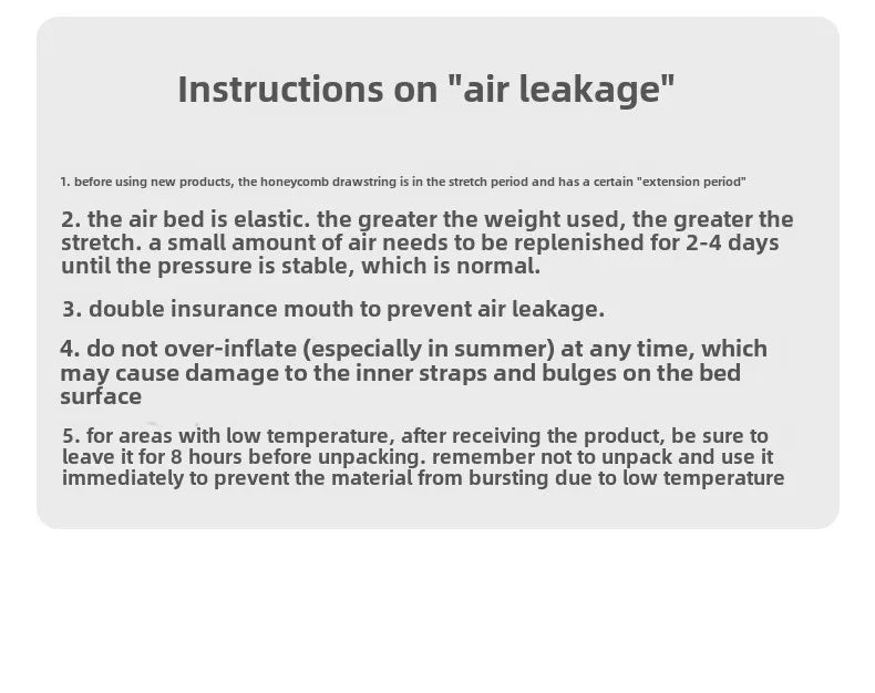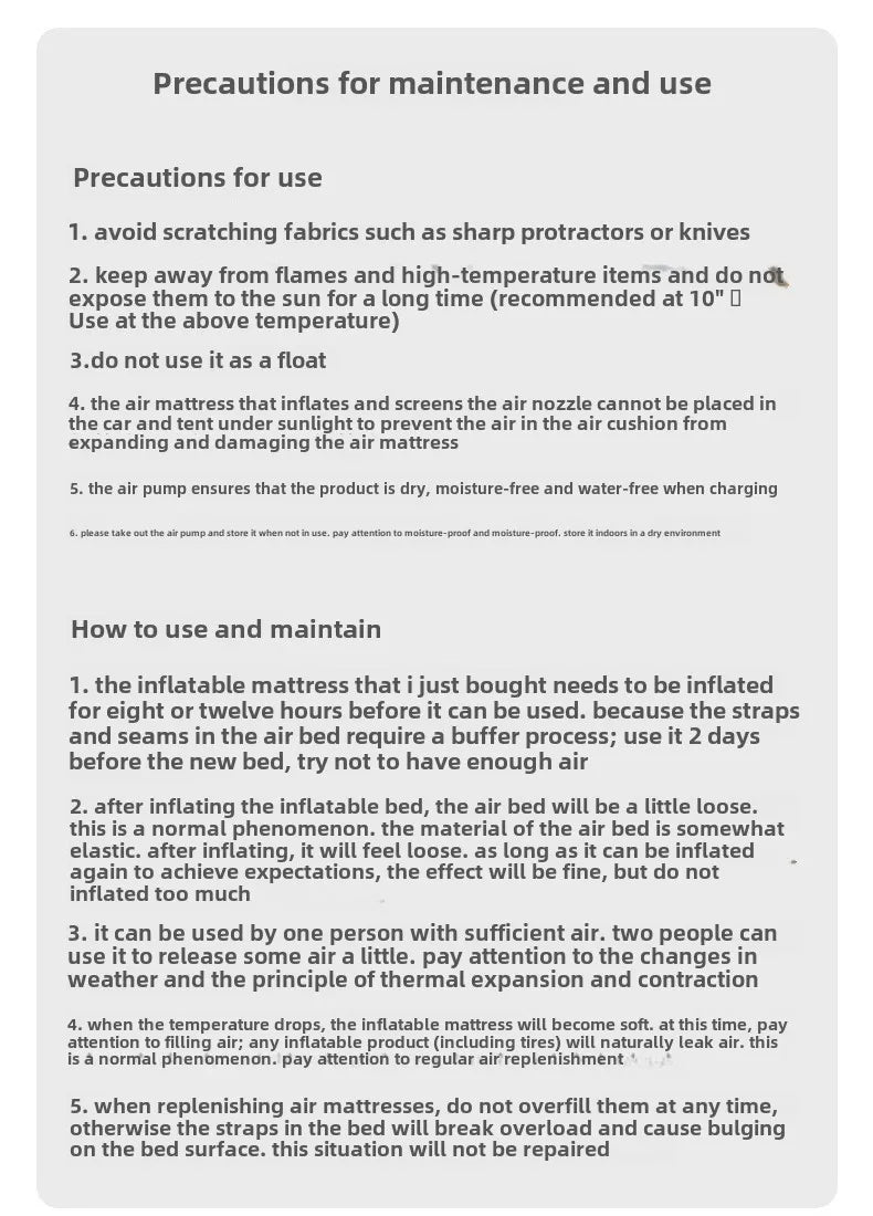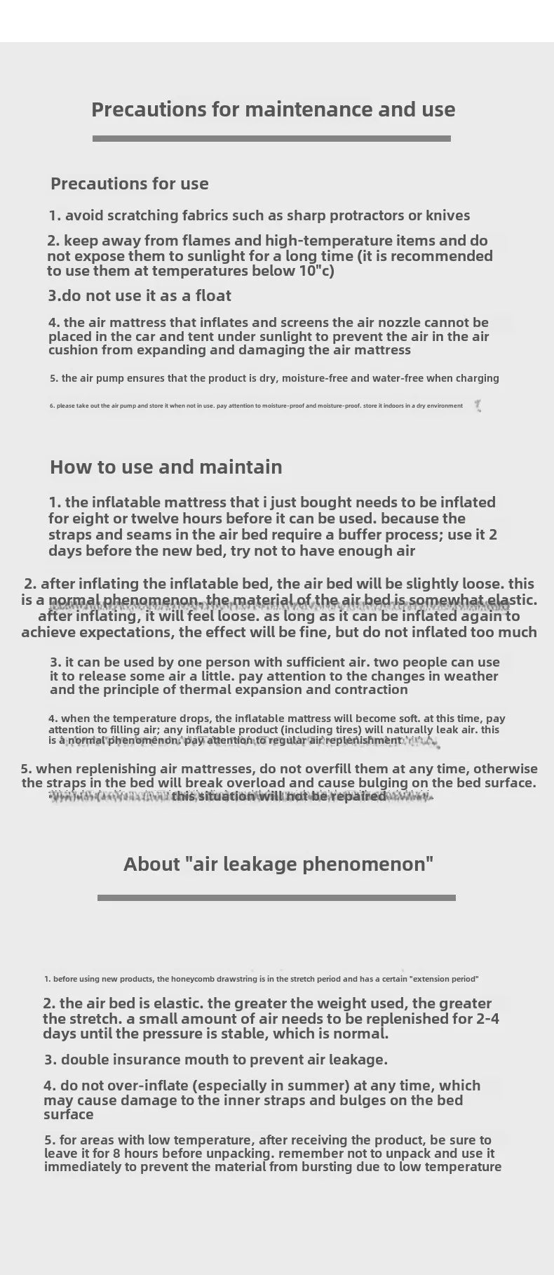 - Deflate: Open the ABS air nozzles to quickly release air and pack the mattress in its storage bag.