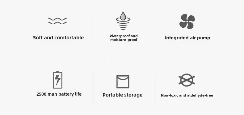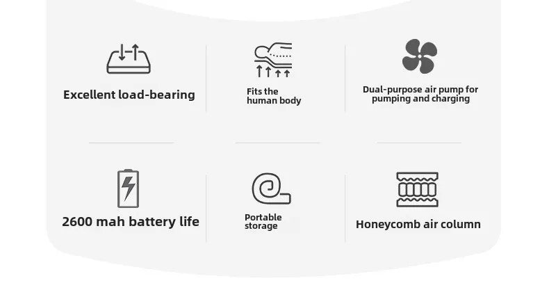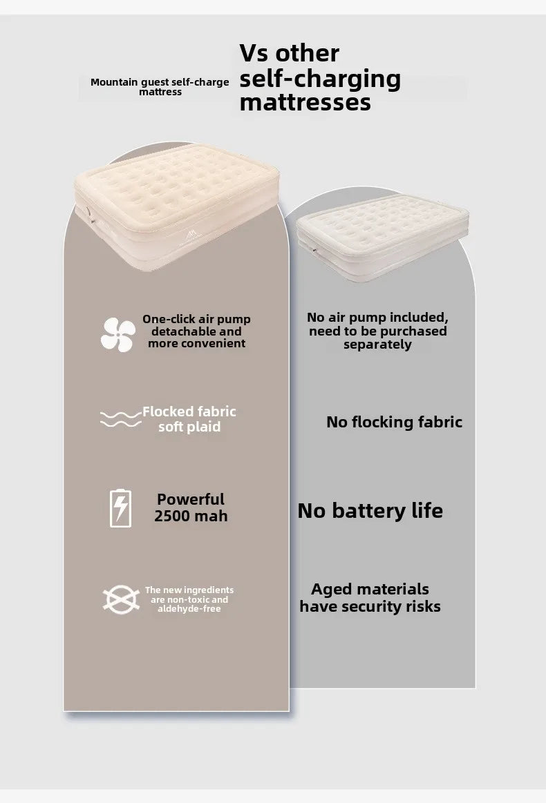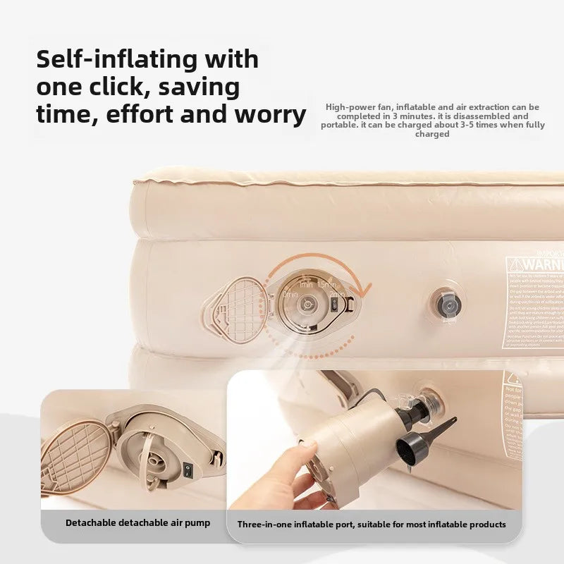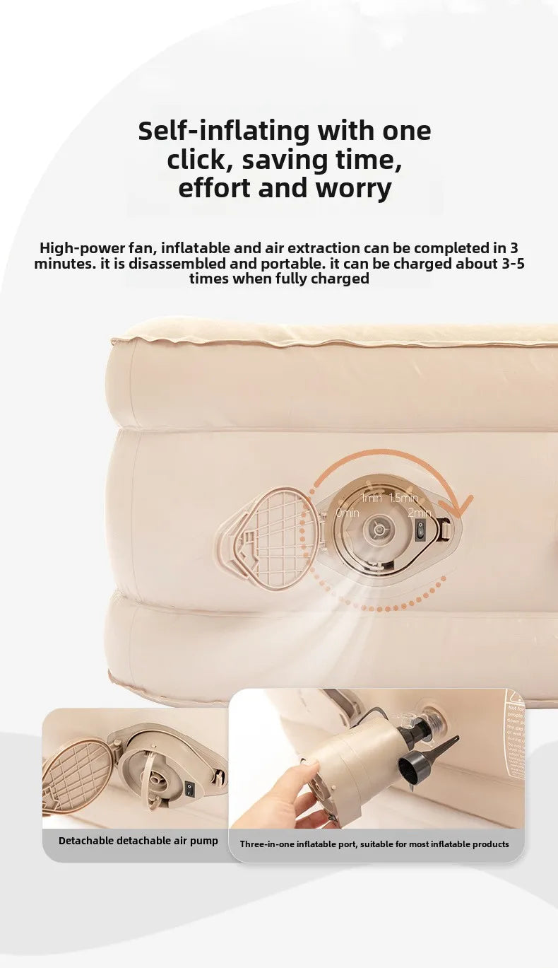 - Built-In Inflator Pump: Equipped with a square pump featuring a 2600 mAh lithium battery, inflating your mattress is effortless and quick. The pump is designed for efficiency, filling up the mattress in just minutes.