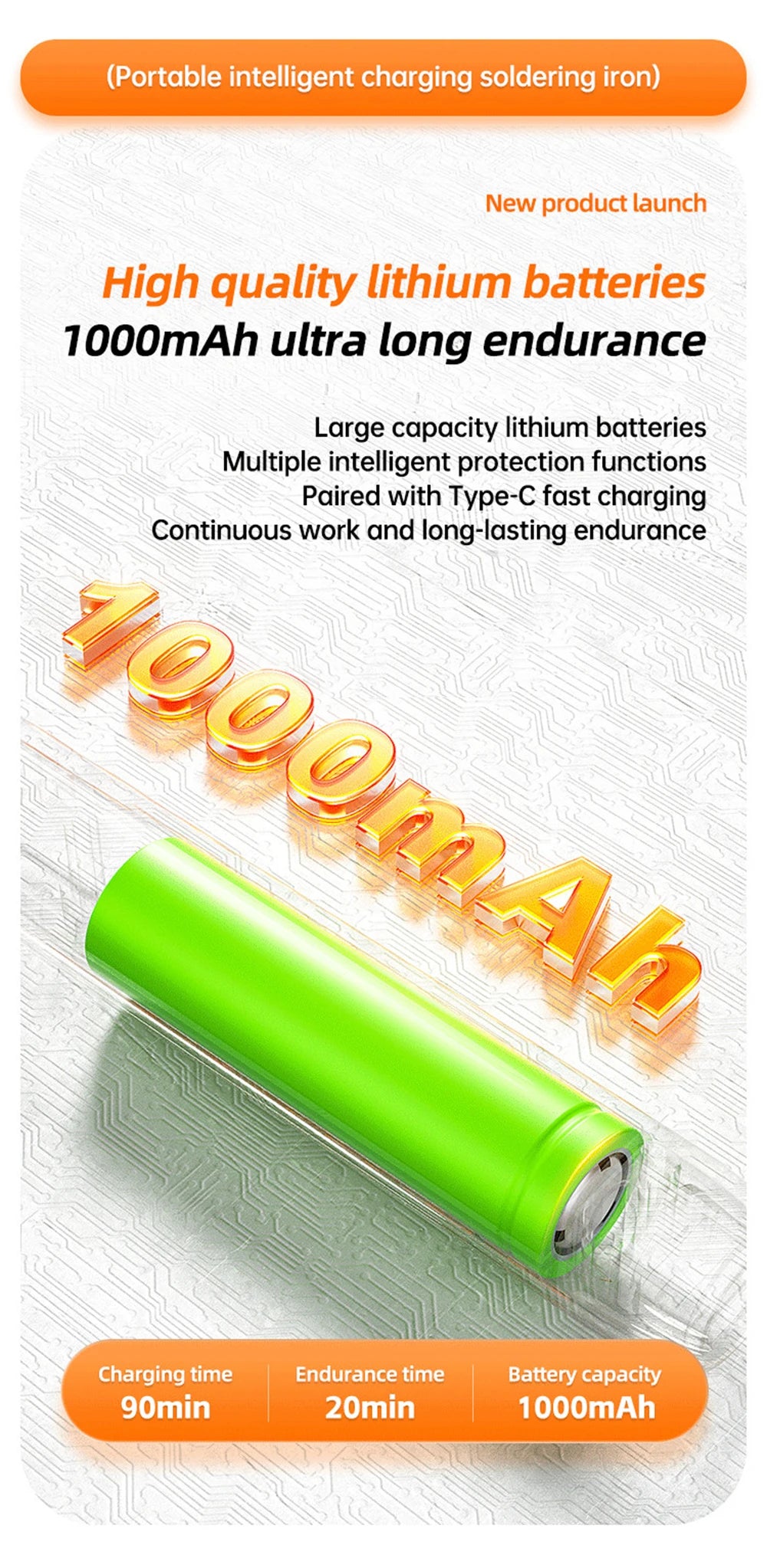Charge it quickly, use it anywhere. This cordless soldering iron runs up to 30 minutes on a single charge and recharges fully in just 90 minutes.