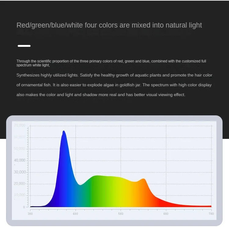 WRGB Full Spectrum: The WRGB spectrum ensures that your fish and plants get the full range of light they need for optimal growth. Whether it's for encouraging algae growth or enhancing your fish farming setup, this lamp meets all your aquarium lighting needs.