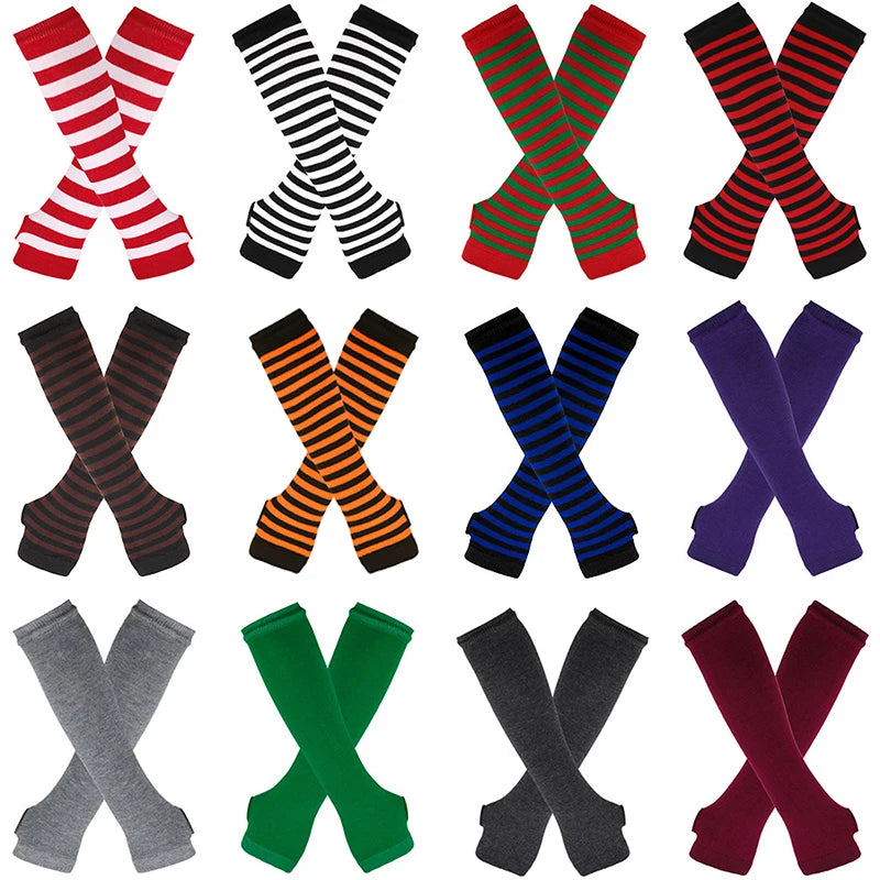 - Style: Fingerless, striped, and knitted for comfort and flair
