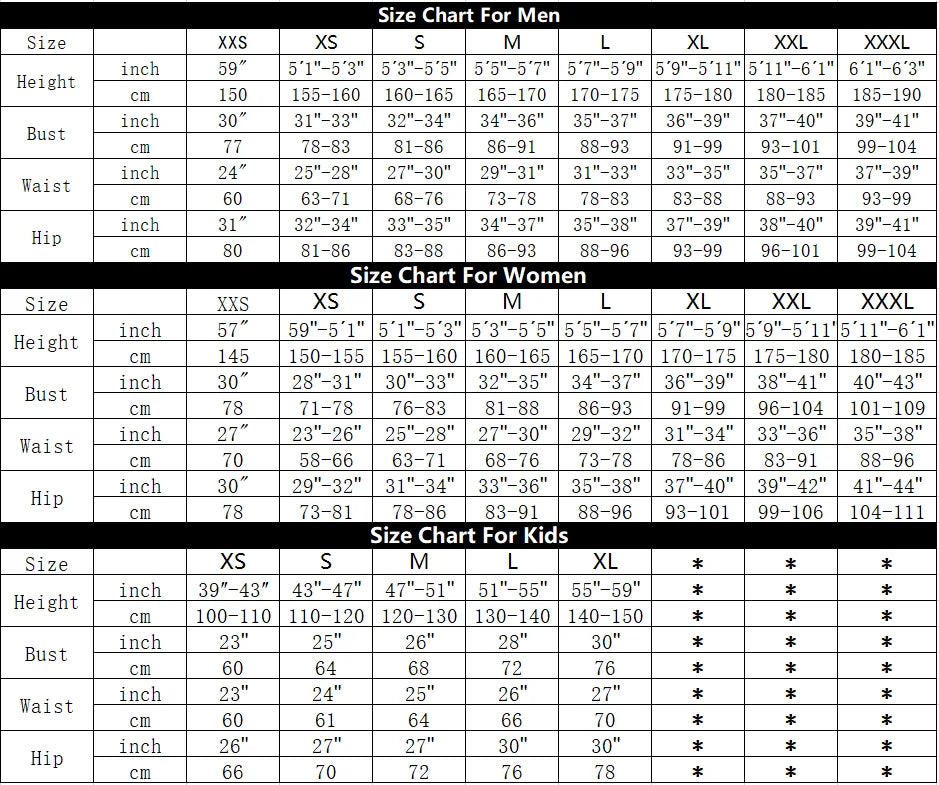 Sizes: XS–3XL (Custom sizing available)