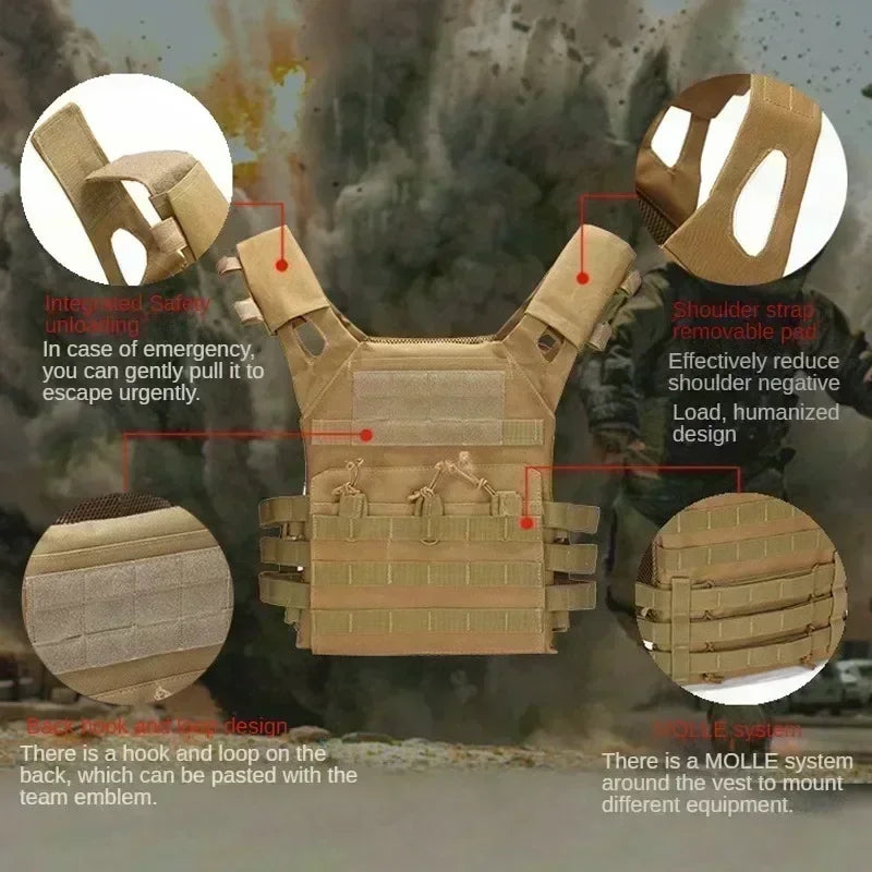 Nylon Tactical Vest: Military-Grade Body Armor for Hunting, Airsoft, and Combat – MOLLE Camo Vest for Jungle and CS Game Equipment !