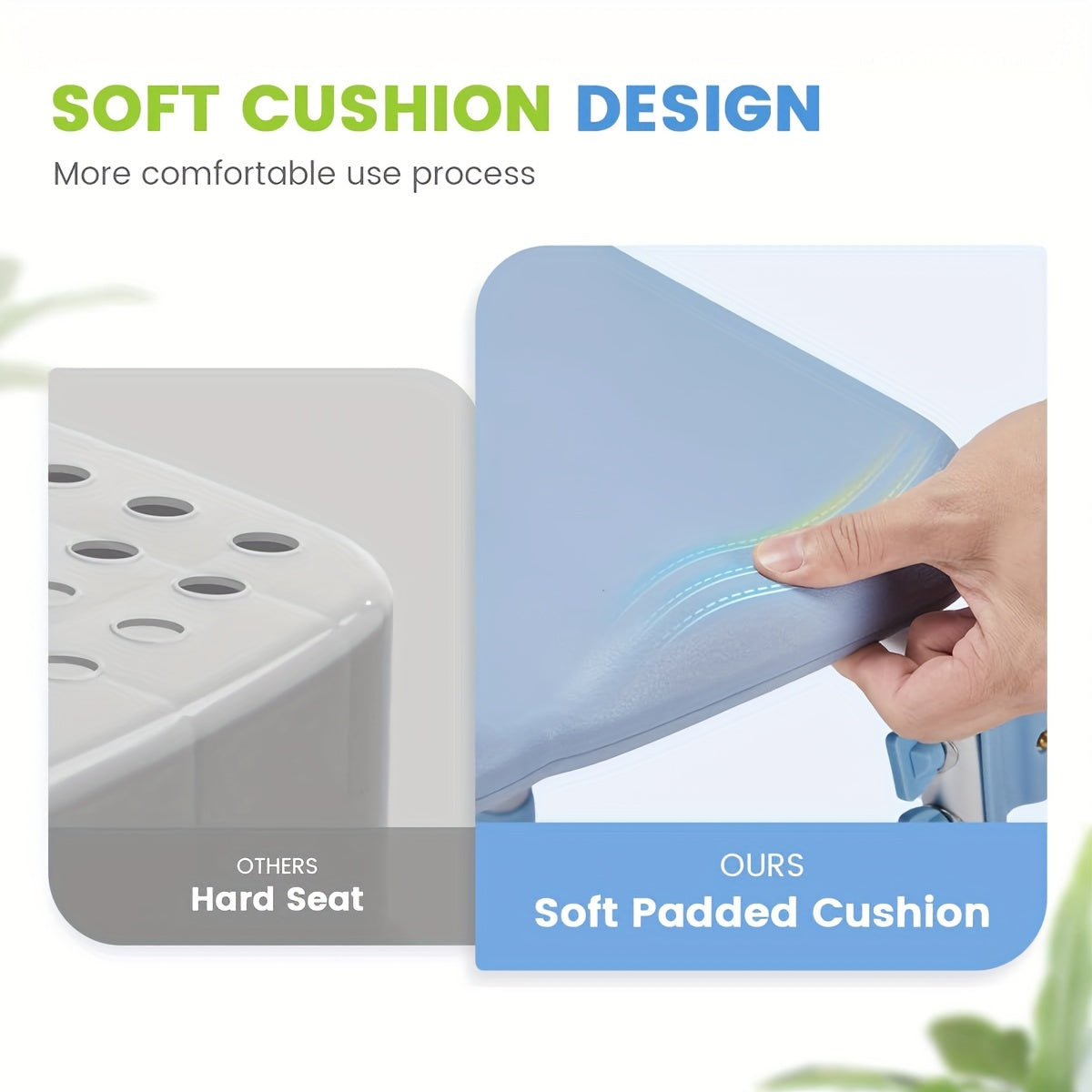 Secure and Stable: The chair's anti-slip legs and non-slip surface ensure stability even in wet conditions, making it ideal for safe, worry-free showers.