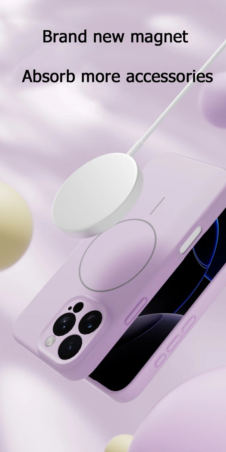 Original Liquid Soft Silicone MagSafe Case — Magnetic Wireless Charging Cover for iPhone 11–16 Pro/Max/Plus