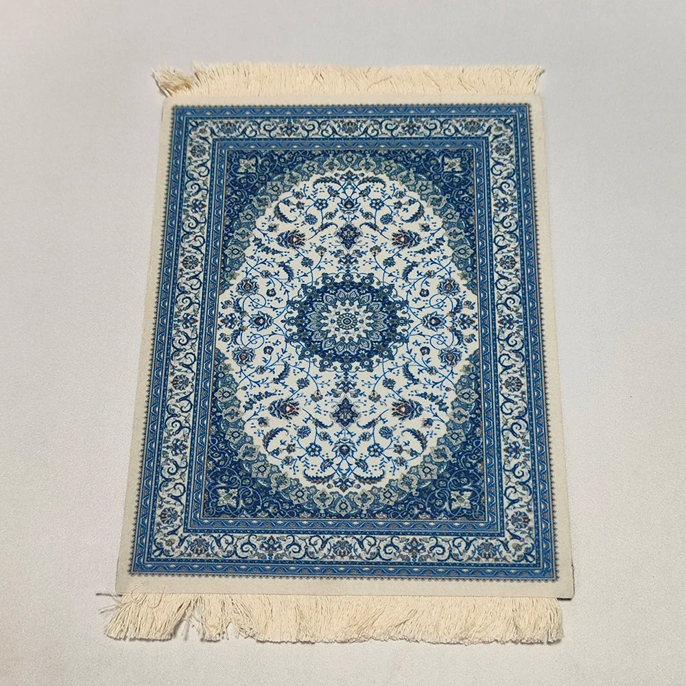 Persian Carpet Inspired Small Coaster - Retro Style Mouse Pad Desk Mat with Woven Flower Design - Non-Slip Rubber Computer Mat