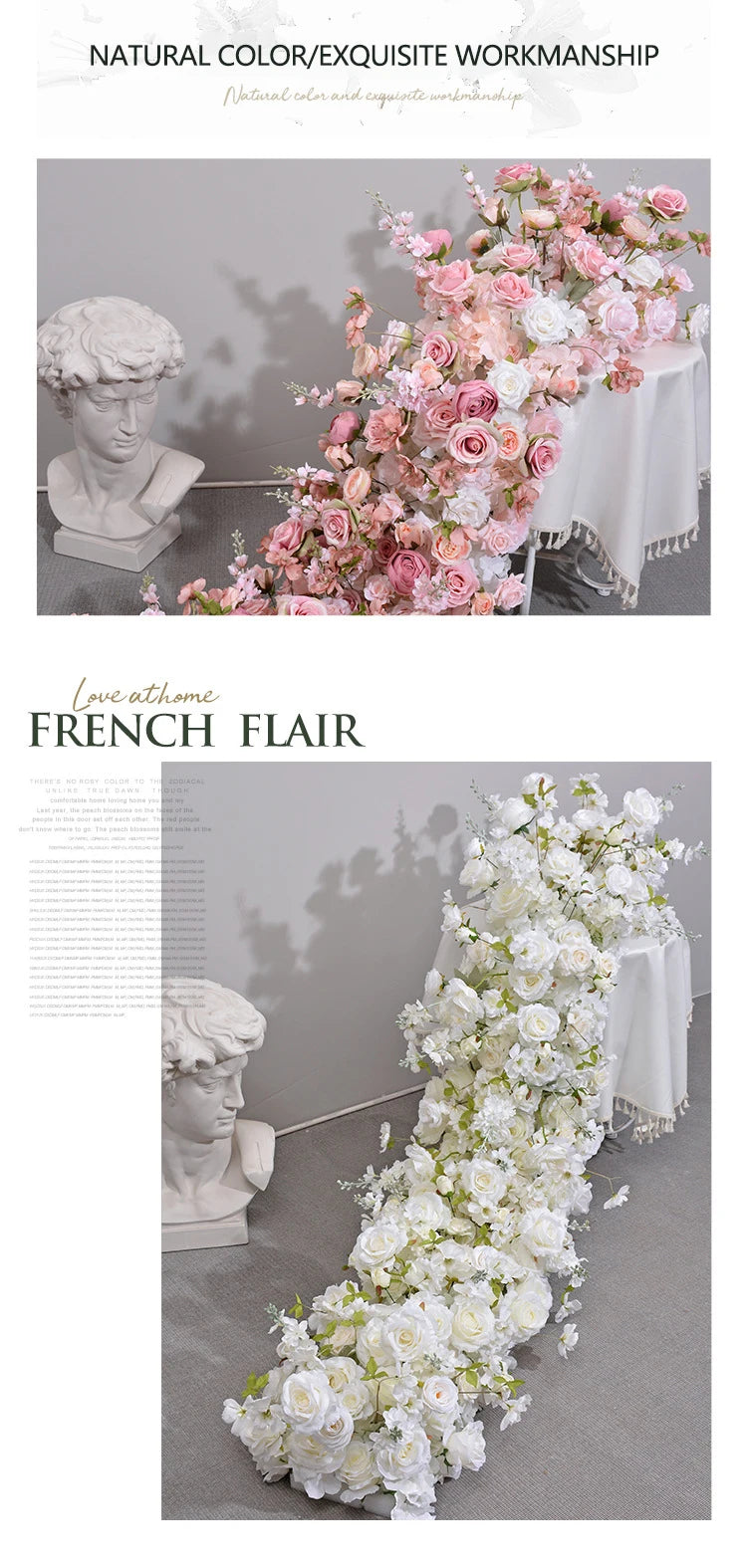 Pink Rose Artificial Flower Row – Large Floral Runner for Wedding Backdrop, Party Decor & Showcase Display Prop