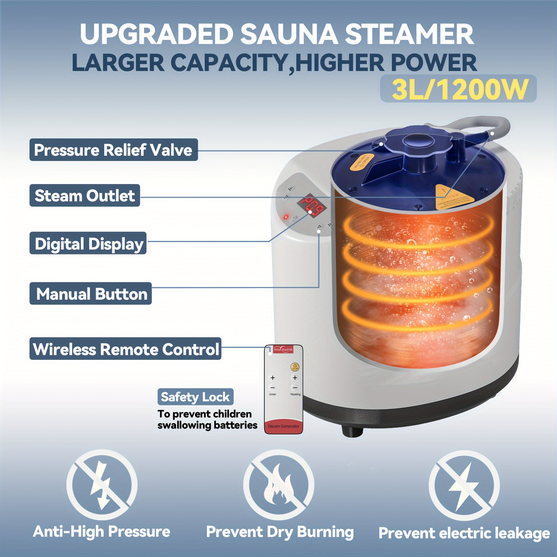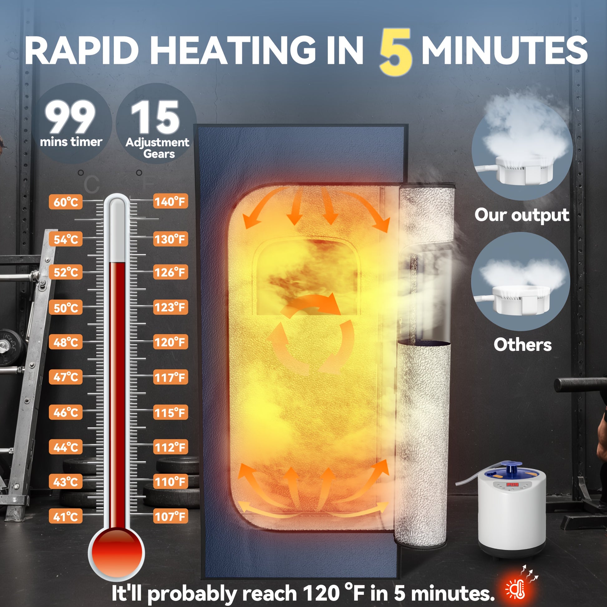 Relaxing Steam Therapy at Home: With its 3L steamer and electric heating method, this portable sauna delivers soothing steam to help you unwind and detoxify. Perfect for those seeking a spa-like experience without leaving the house, it's ideal for relieving stress, soothing tired muscles, and rejuvenating your skin.