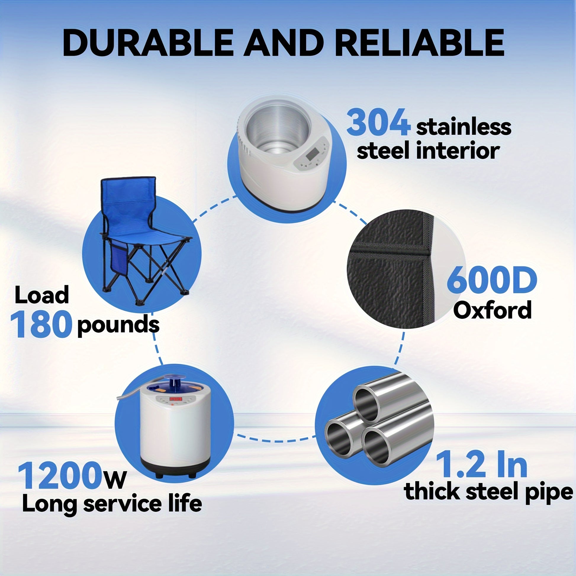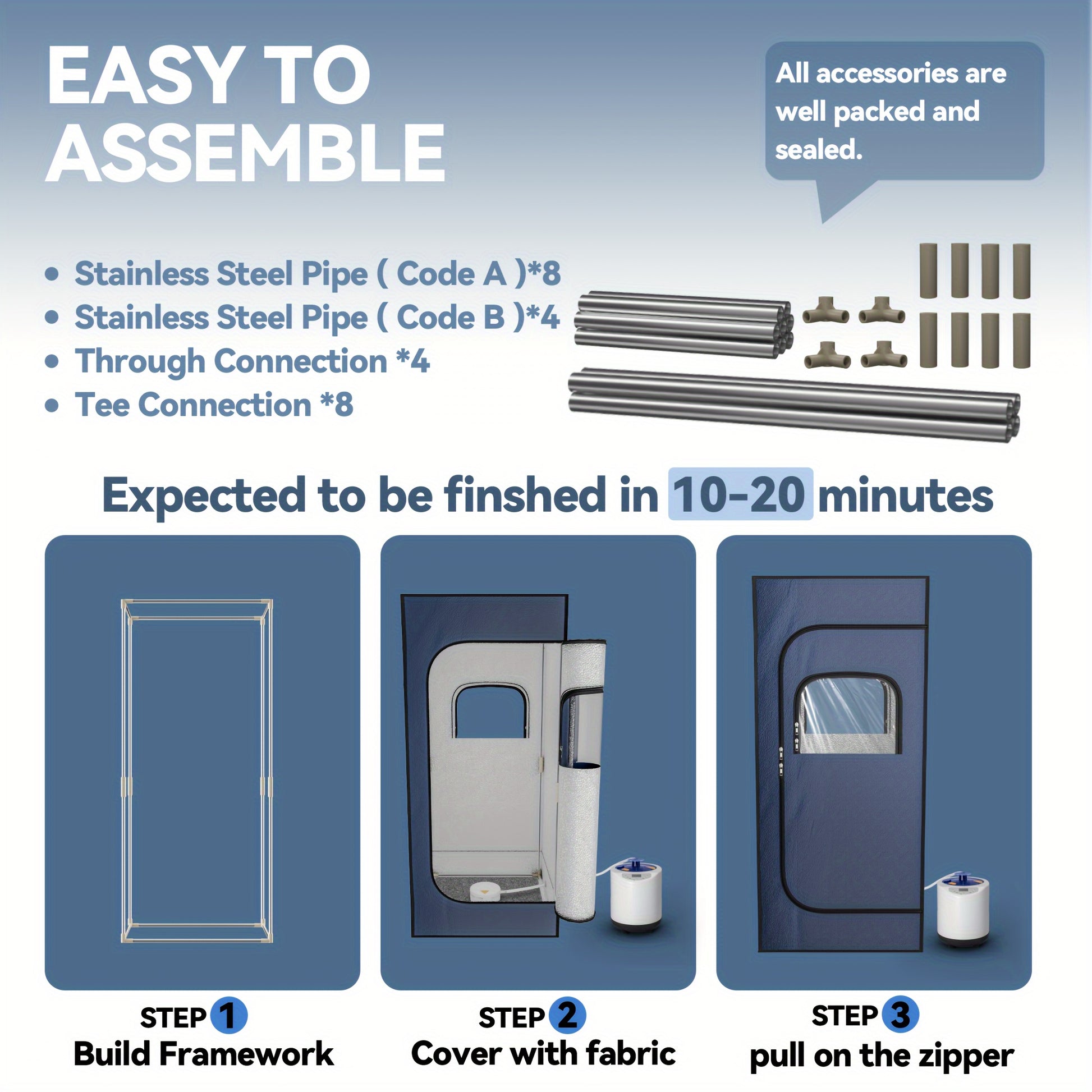 Durable and Comfortable Composite Fabric: Made from high-quality composite fabric, the sauna tent is designed to withstand regular use while providing a comfortable, safe environment for steaming. The fabric is heat-resistant, ensuring safety and longevity, while the navy blue color adds a touch of elegance to your home setup.