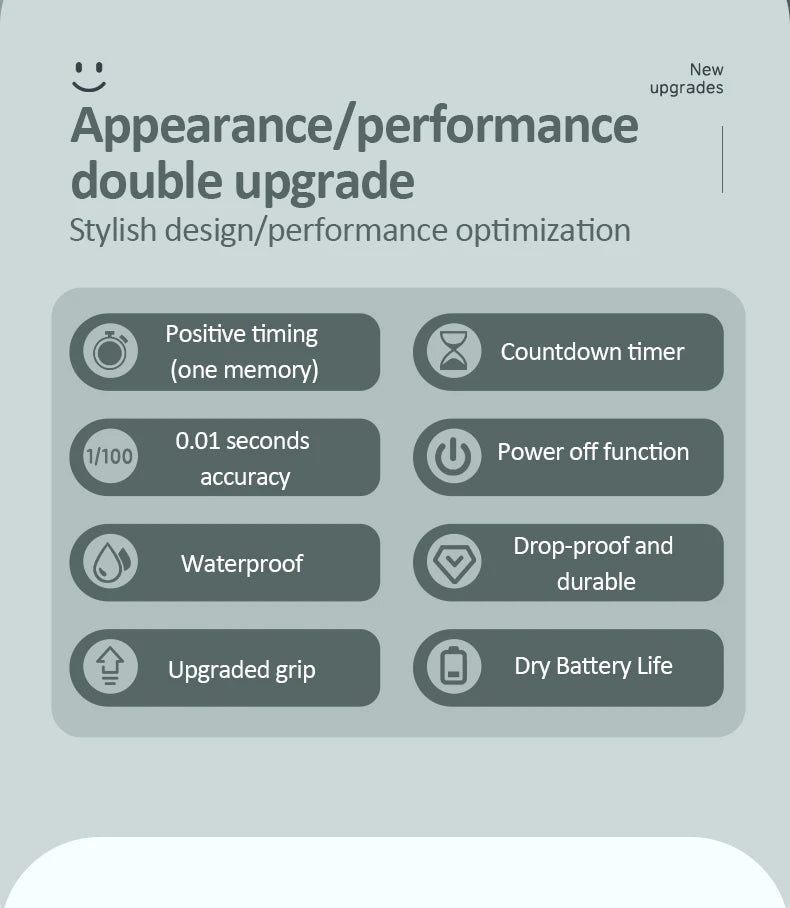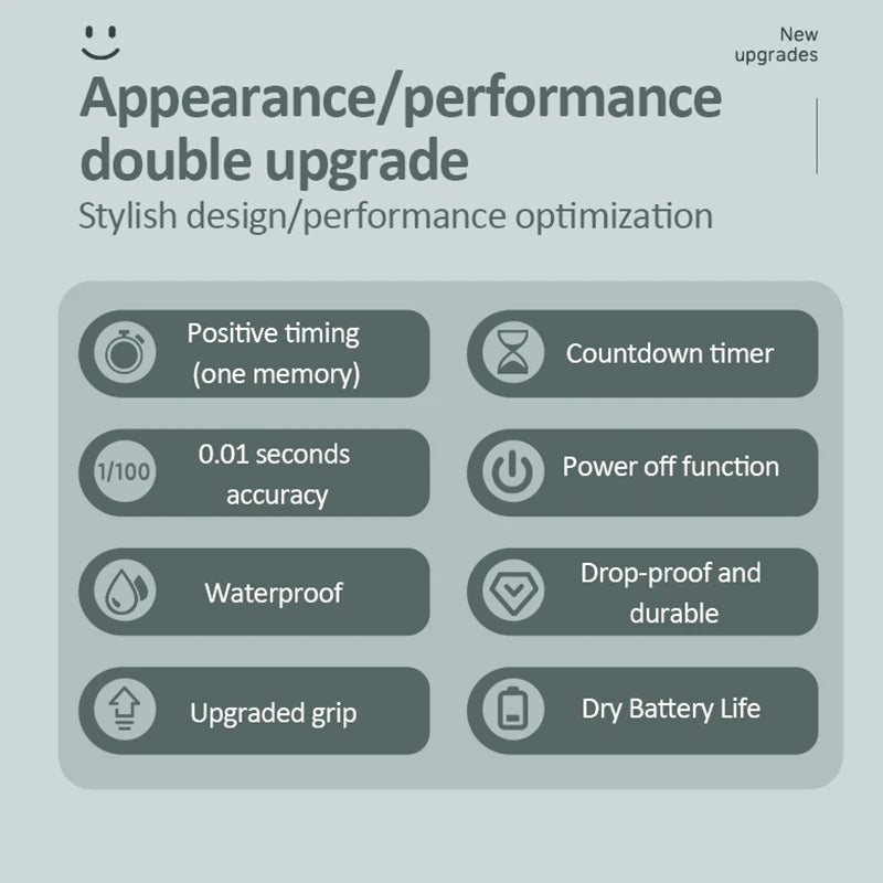 Energy-Saving Shutdown: The auto shutdown function helps save battery life. Simply press and hold the middle button for 3 seconds to turn it on or off, keeping your device ready for the next timing session without wasting power.
