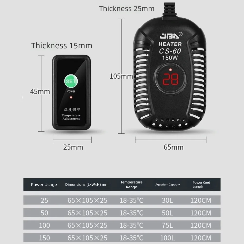 Adjustable Power: Choose from 25W, 50W, 75W, 100W, or 150W settings to suit your tank size and water volume.