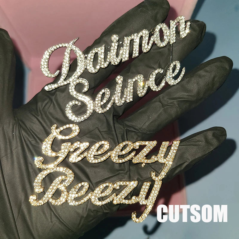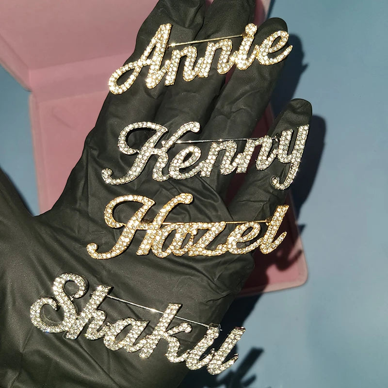 Rhinestone Customized Name Brooch – Handmade Custom Name Plate Pins for Birthday, Wedding & Party Badges