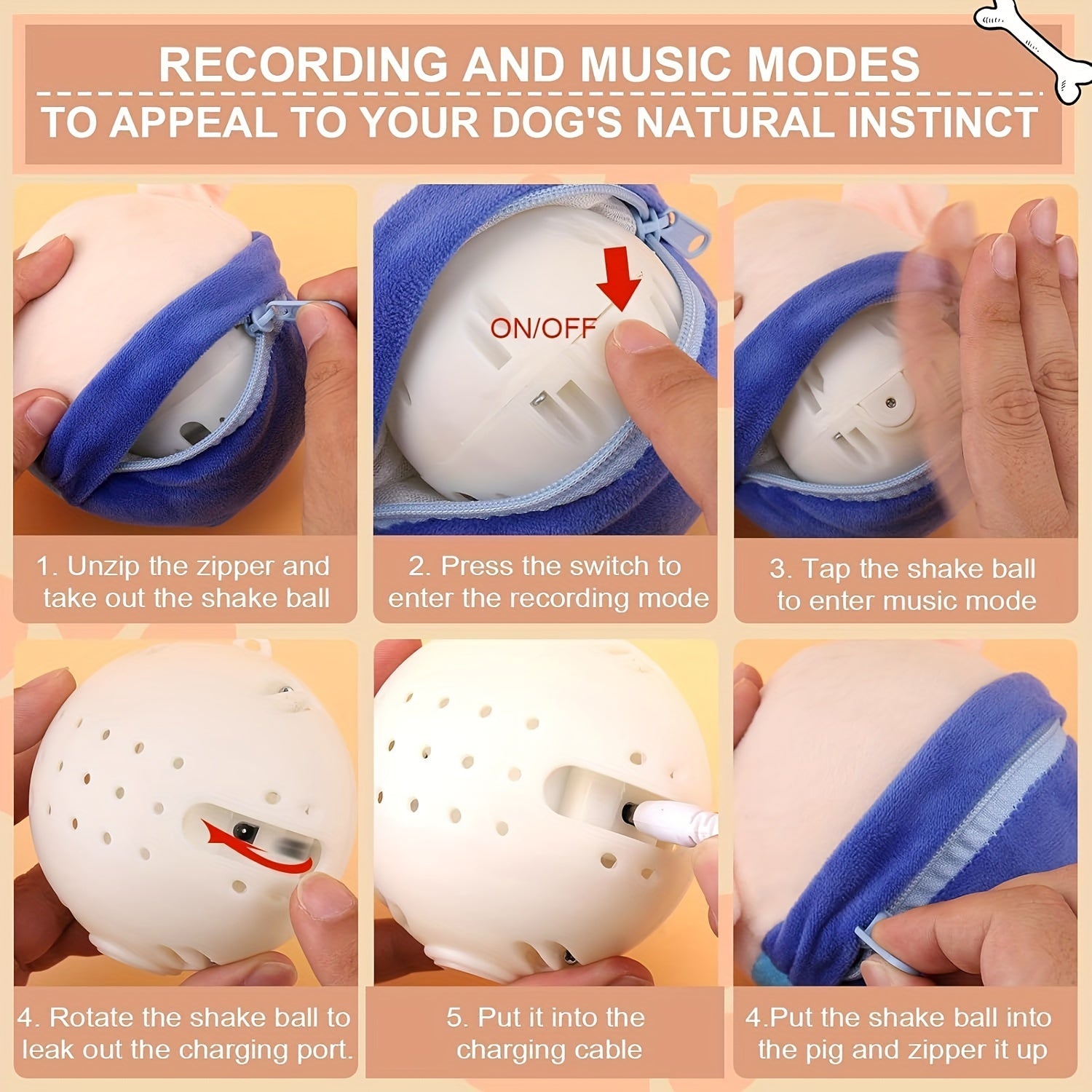 Small USB Interactive Cartoon Pig Plush - Washable Sound Electronic Moving Pet Toy, Active Bouncing Balls for Dogs