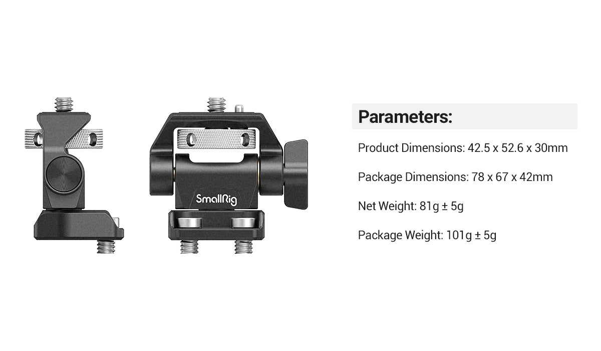 This mount is palm-sized and weighs just 92g, making it ideal for portable setups. Whether you're shooting on-location or need to mount your monitor for a more intricate rig, the SmallRig 2903B ensures a smooth and stable setup without the bulk. It’s lightweight, easy to carry, and doesn’t compromise on performance, providing you with the flexibility you need for mobile shoots.
