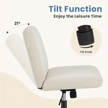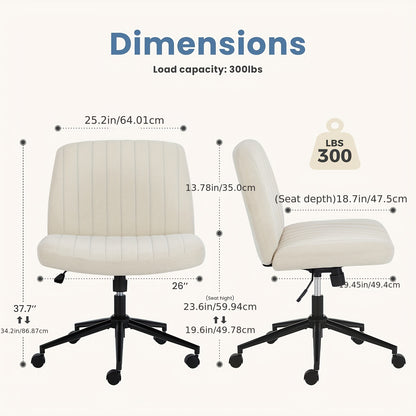 Criss Cross Office Chair with Wheels - Wide Armless Desk Chair, Adjustable Swivel, Comfy for Home and Vanity