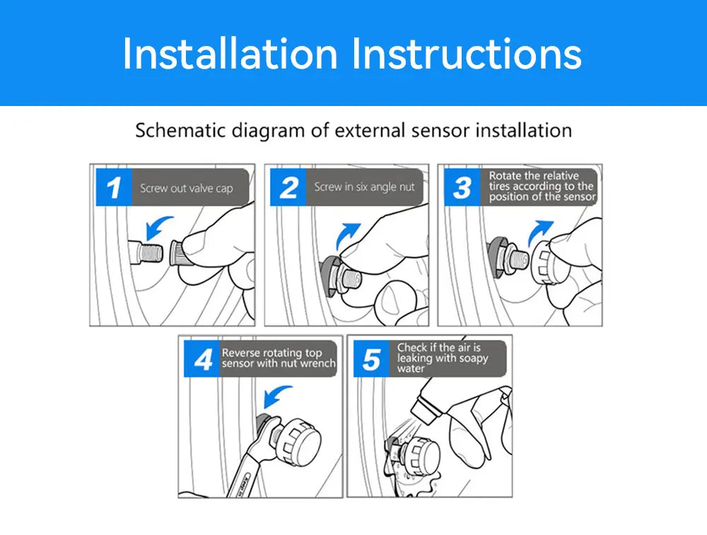 Choose your setup! This TPMS supports 4 external or 4 internal sensors depending on your needs. The external sensors are super easy to installβjust screw them onto the valve stems, pair them, and youβre good to go!