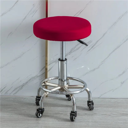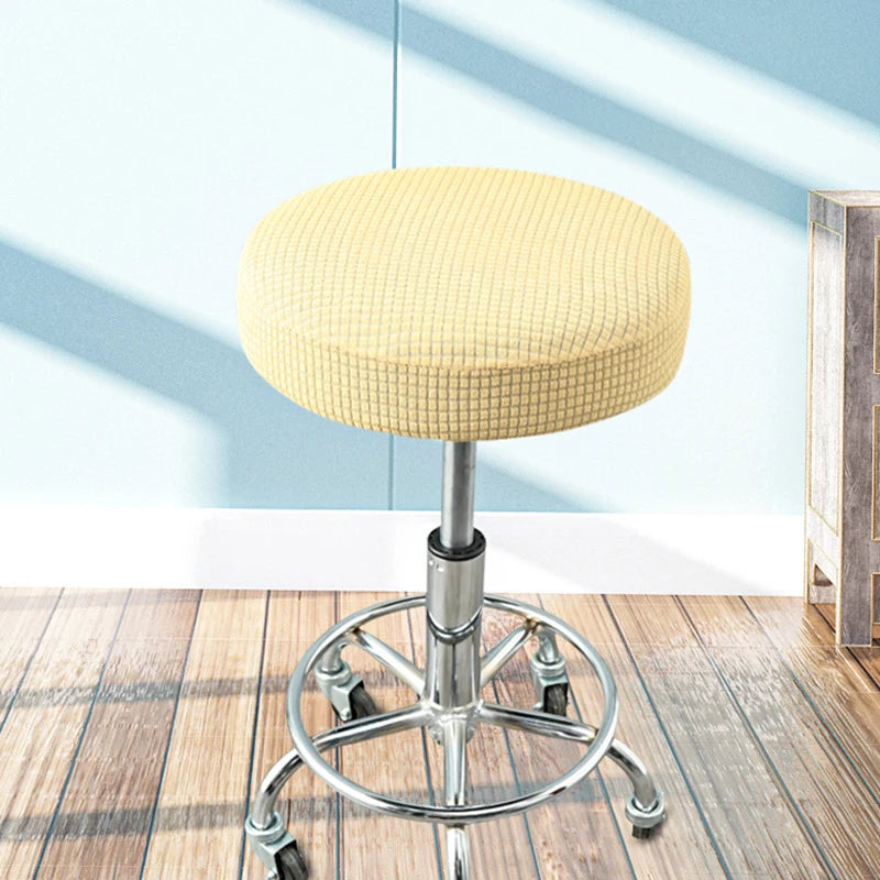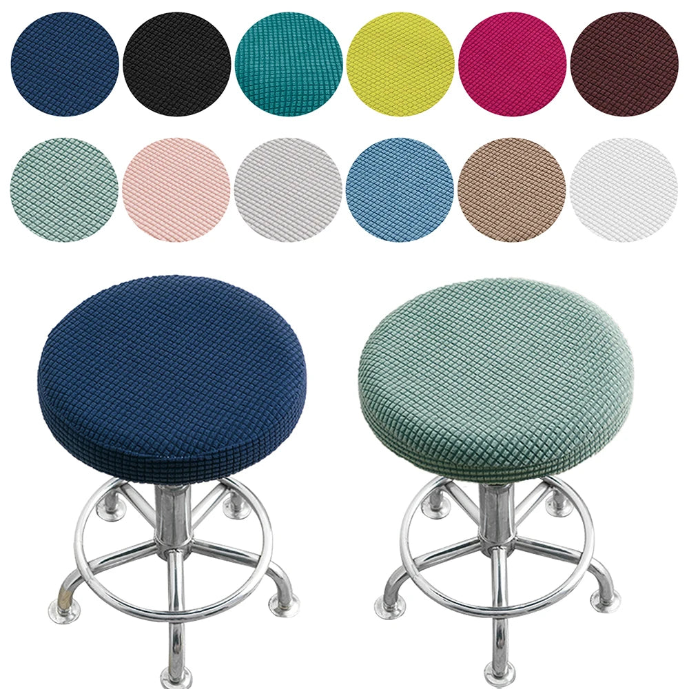 Premium Solid Color Round Chair Cover - Elastic Dining Stool Cushion Seat Slipcover