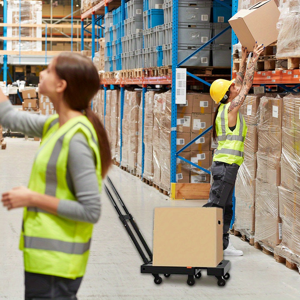 Folding Design for Easy Storage: The foldable frame allows for compact storage, making this hand truck incredibly convenient. Whether you're in a small apartment, office, or storage room, it’s easy to stow away without taking up precious space. Simply fold it down when not in use, and you’re good to go!