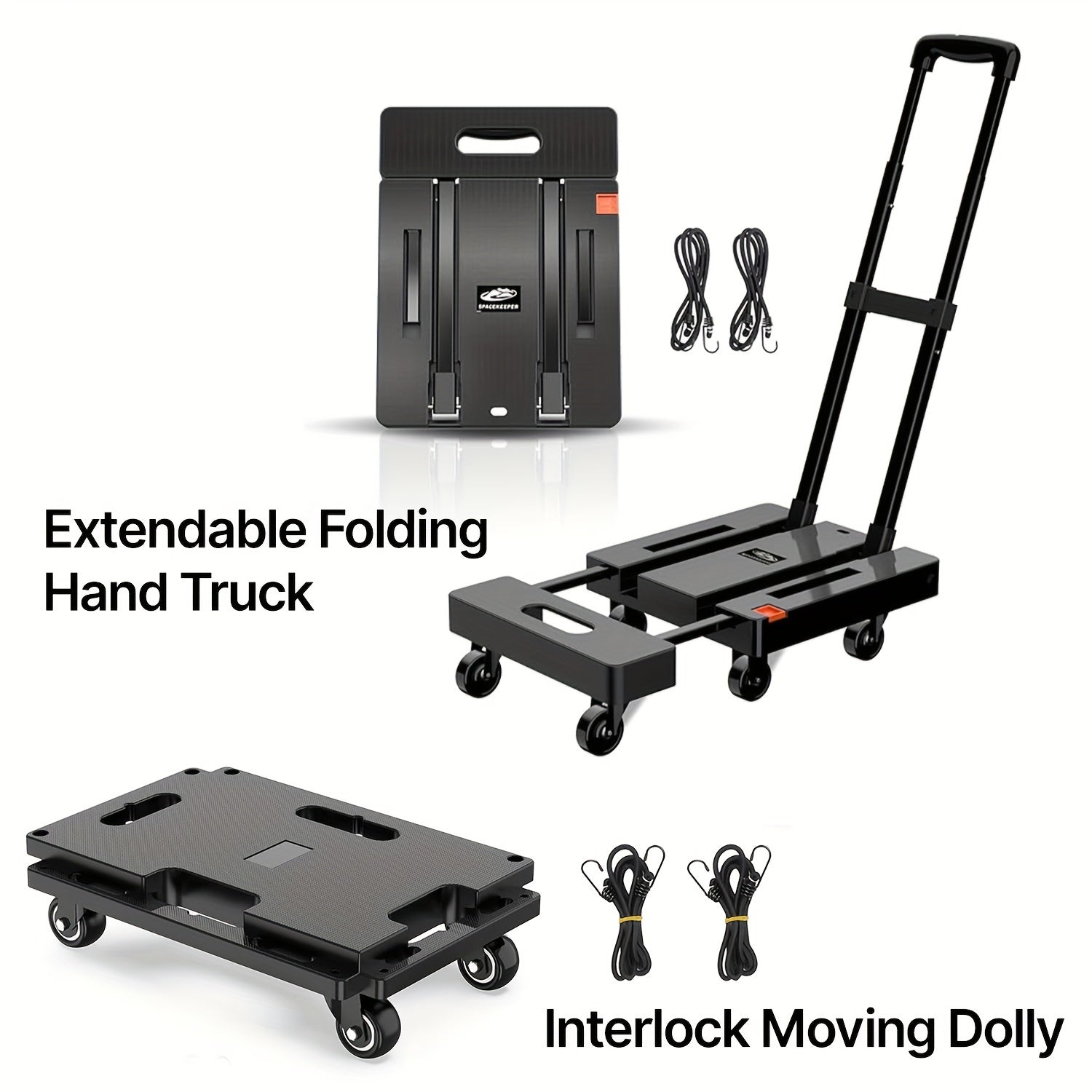 Spacekeeper Folding Hand Truck – 500 LB Heavy Duty Utility Dolly with 6 Wheels & 2 Elastic Ropes for Luggage, Moving, Shopping, Office Use (Black)