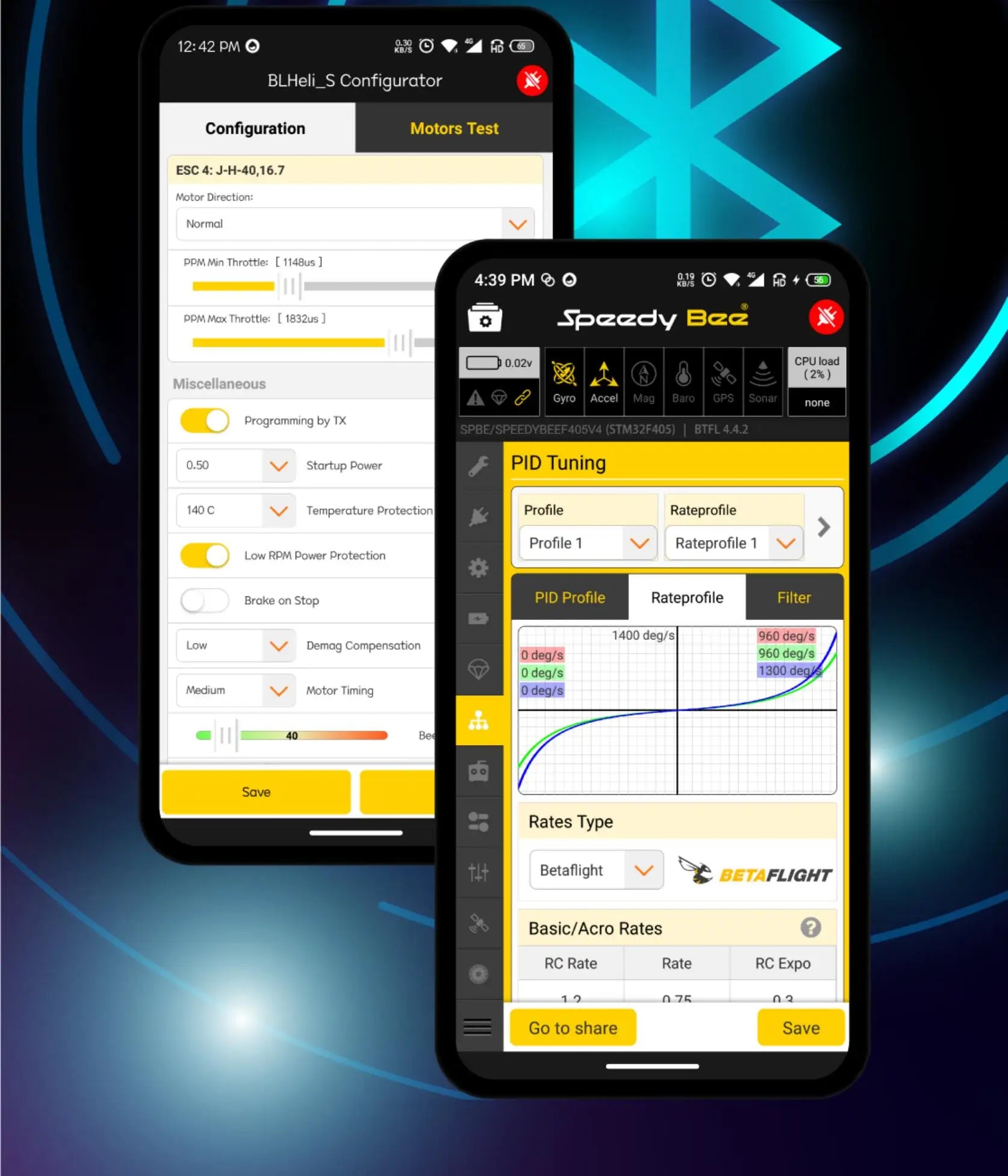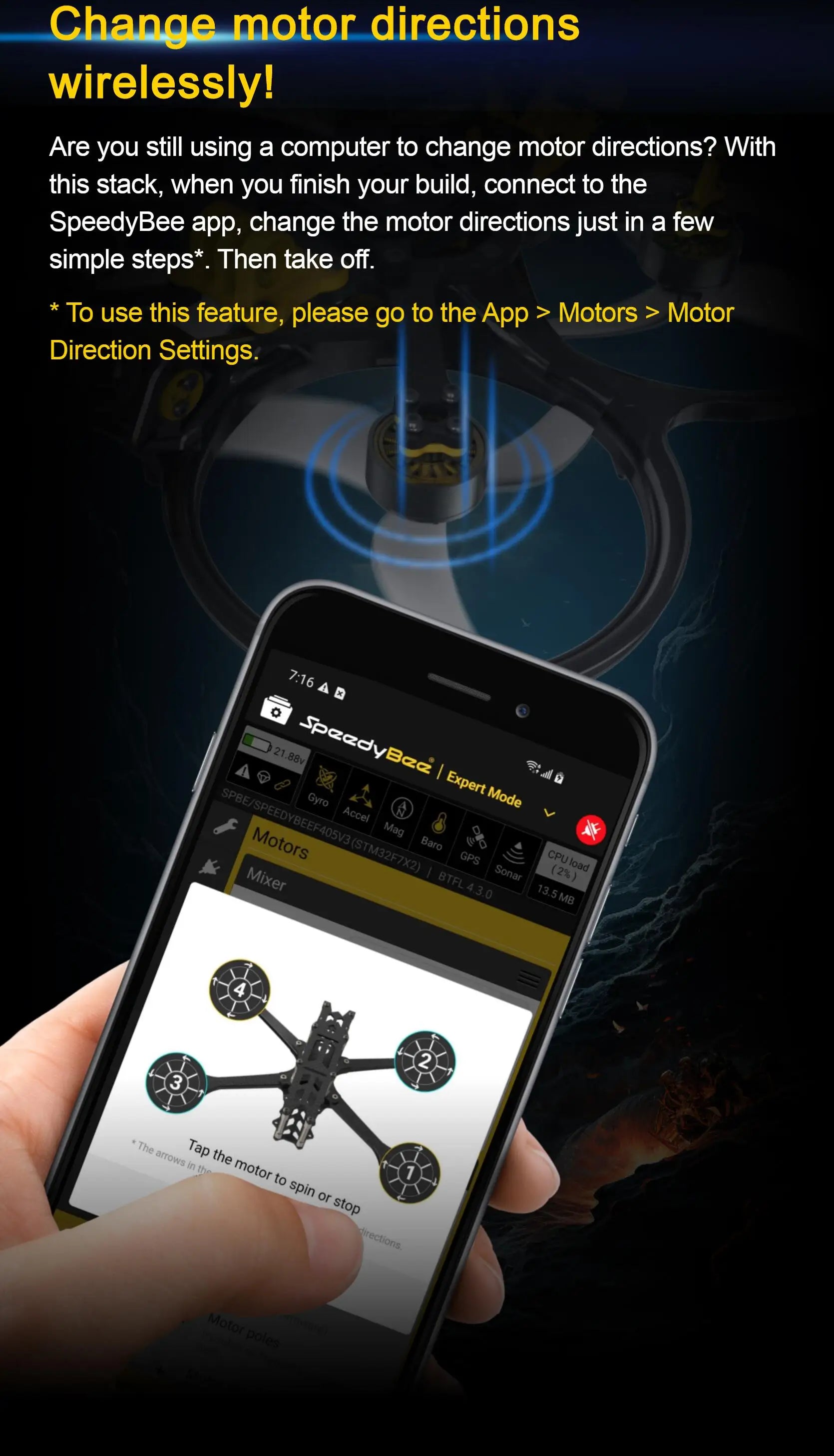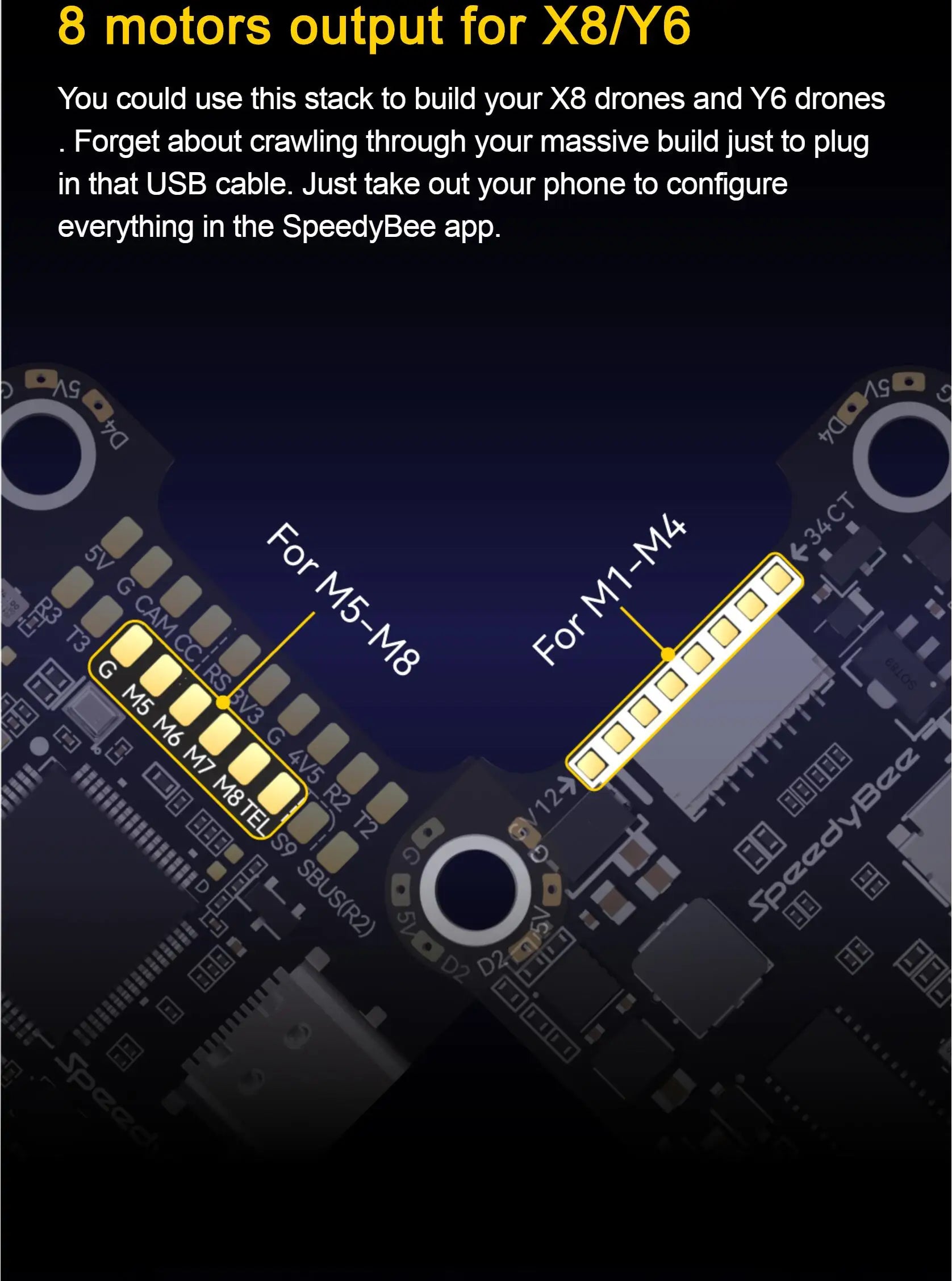Wireless Configuration: Make adjustments easily with Bluetooth-enabled SpeedyBee App configuration support. Set up your drone quickly without the need for cumbersome USB connections. (Note: Wireless firmware flashing is not supported.)